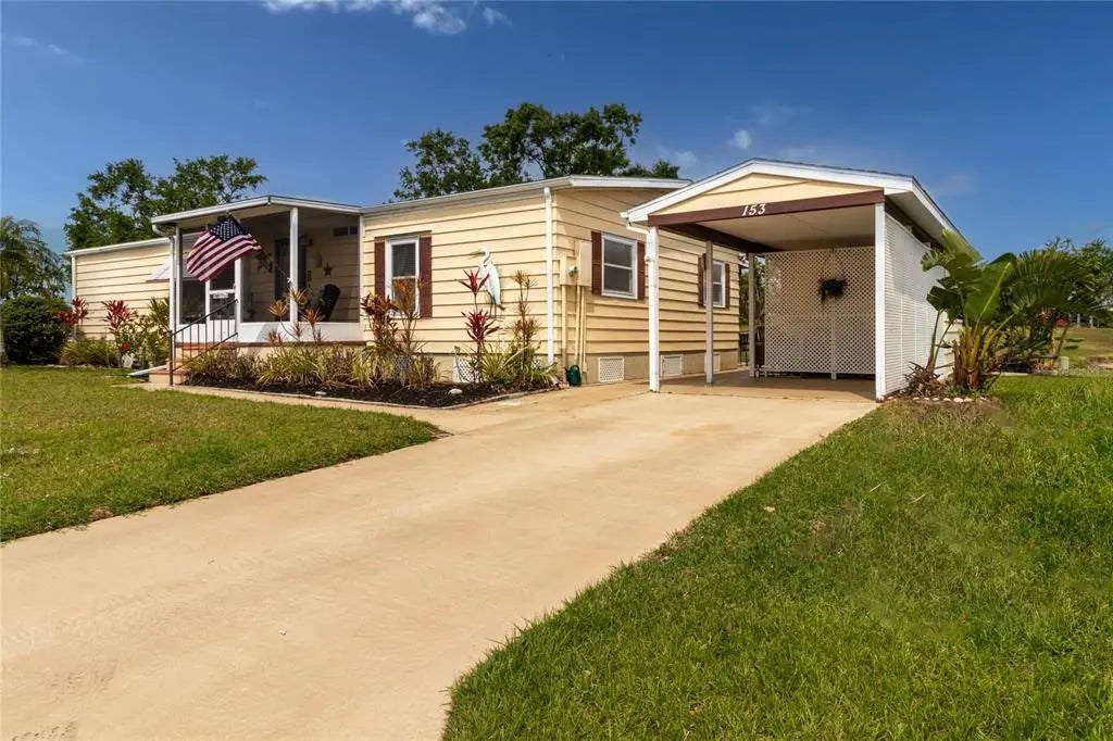 LAND OWNED and a VERY WELL MAINTAINED-RARE 3 Bedroom, DOUBLE WIDE WATERFRONT HOME WITH A SPECTACULAR VIEWS! This home features a screened in lanai with your own private hot tub and also features a 2nd lanai/Florida room, both with views of the water. Inside this home offers a split floor plan and large living room and dining room. The kitchen is well appointed and features many cabinets, nice appliances and great views of the water. The primary bedroom is very large with plenty of room for a king-sized bed. The 2nd and 3rd bedrooms feature walk-in closets and windows to let the sunshine in. In addition, the home has a large screened in front porch, a great workshop and an additional patio outside for grilling or sunbathing. This is a very nature rich home and the views are fantastic, it is SIMPLY A MUST-SEE Home! Living in the Ridgewood community is a very special experience! It is a 5-star community with gate attendants on duty 24 hours a day and 7 days a week! New pickle-ball courts, exercise park, tennis courts, community pool, great fishing and a club house. There are activities, dinners and trips galore! To top it off it is convenient to just about everything whether it is shopping, restaurants of every type and only 25-30 minutes to the beautiful sugar sand gulf beaches! Come and enjoy the gentle Florida climate and delightful Florida lifestyle that you have always dreamed about at RIDGEWOOD! All room sizes are approximate. All information is deemed reliable but should be verified by buyers and/or buyer's agent.