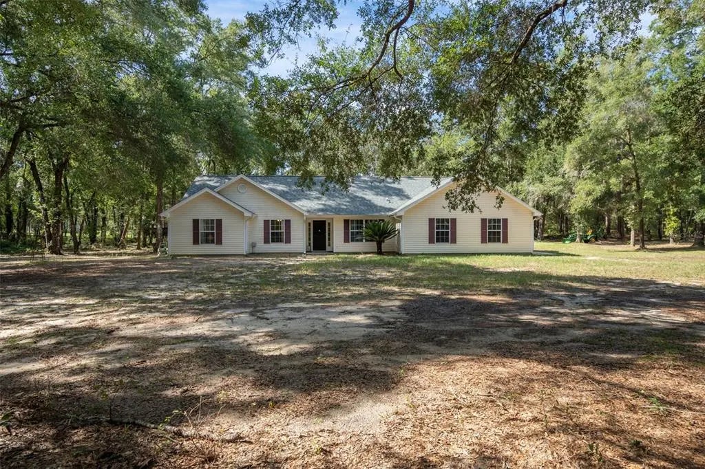 One or more photo(s) has been virtually staged. Welcome home to this beautiful 3-bedroom, 2-bath residence nestled on 4.84 acres in Whispering Oaks community. With no HOA or CDD fees, this property offers both freedom and privacy. Inside, the split floor plan highlights a spacious primary suite complete with a walk-in closet, soaking tub, and separate shower. The kitchen is the heart of the home, featuring bar seating, a breakfast nook, and ample cabinet space—all flowing seamlessly into the living room to keep family and friends connected. For added versatility, the home also offers a private office with French doors and a formal dining room for entertaining. The bedrooms feature tile under the carpet for ease of remodeling, and an ADT security system is pre-installed (just not set up). From the living room, French Doors open to a covered porch overlooking the sparkling pool, hot tub, and expansive wooded lot—an ideal spot to relax and watch local wildlife with your morning coffee. Out front, mature shade trees create a picturesque setting, with plenty of space to park your RV or boat. The property is already equipped with a 30 AMP RV hookup and water access for added convenience. Don’t miss your chance to own this beautiful slice of Florida paradise!