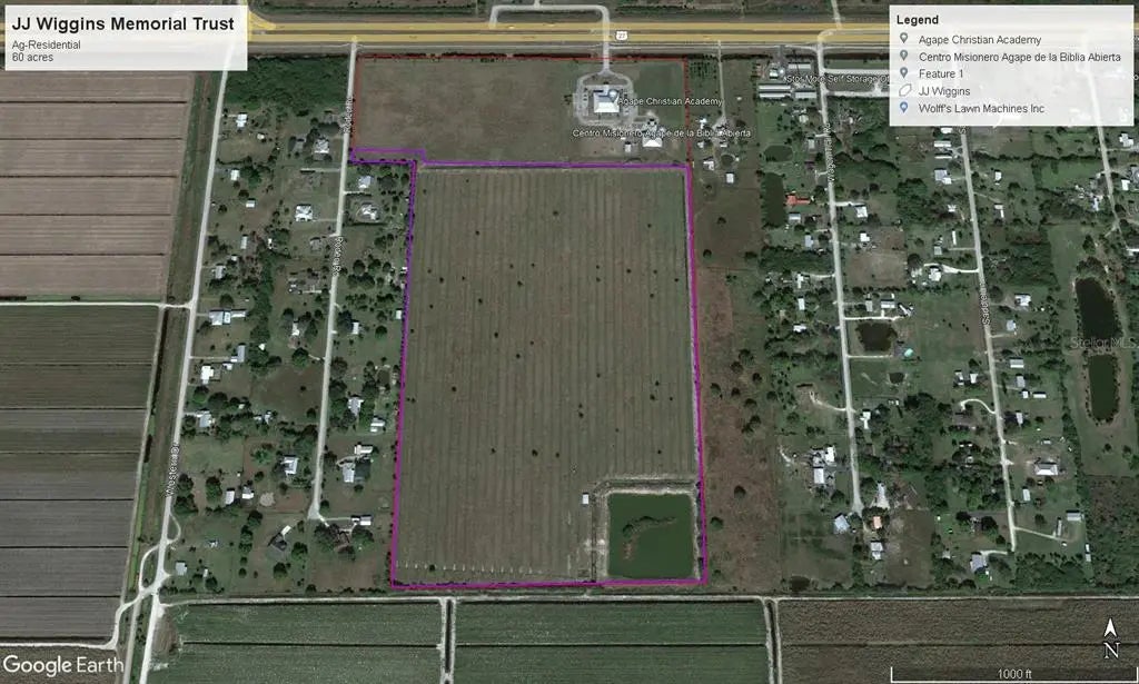 SIXTY ACRES OF RESIDENTIALLY ZONED LAND! This rare 60 acre parcel has great location, city water and sewer nearby, and is adjacent the Glades Little Ranches Subdivision. The property has scattered, small oak trees throughout the property, and minor swells from the past orange grove. There is also a 5 acre retention pond in the southeast corner. Current zoning calls for densities of 1 homesite per 5 acres.
