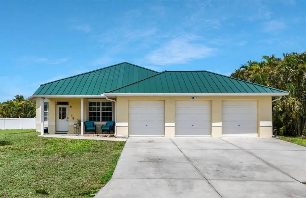 Under contract-accepting backup offers. MUST SEE 3-Car Garage Home with Swim Spa! Located in Southwest Cape Coral, this Beautiful and Spacious ICF Constructed Home offers 1,784 sq ft of Living area, 3 Bedrooms, 2 Baths, 3-Car Garage, Heated Swim Spa, and is Move-in Ready. The Large Kitchen is sure to please the Chef of the house with Stainless Steel Appliances, Solid surface Countertops, an Abundance of Cabinets and Counter space, an Island, Breakfast Bar, and Desk. The Fenced Backyard is Ideal for pets and children, and you will Love spending time in your Heated Swim Spa – Perfect for Exercise, Relaxation, and All-season Enjoyment. The Good-sized Owners Suite has a Big Walk-in Closet, Dual Sinks, Nice-sized Walk-in Shower, Water Closet, and Linen Closet. There is Tile throughout and Carpet in the Primary Bedroom. The Guest Bath was Updated in 2024 with a New Vanity and New Toilet. Other Features include a New Metal Roof 2023, New Swim Spa 2022, Water Heater approximately 3 years old, New Plank Tile in Guest Bedrooms 2022, New Carpet in Primary Bedroom 2021, New Fence 2018, Volume Ceilings, Recessed Lighting, Laundry Room with Utility Tub and Extra Pantry, Drop-down Stair access to a Huge Attic with Lots of Storage space, and 2 Garage door springs were Replaced in 2024. The Living room, Family room, All Bedrooms, and Lanai are equipped with Ceiling Fans. Currently, the Dining room is being utilized as an office and the Family room is being utilized as a dining room. Great location close to Dining, Shopping and Beaches, with easy access to Fort Myers, RSW International Airport and the Punta Gorda Airport. This Home has had NO flooding. THIS HOME DOES NOT REQUIRE FLOOD INSURANCE! Make an Offer Today!