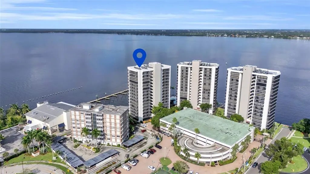 Perched on the 9th floor of one of Fort Myers’ most sought-after riverfront communities, this exceptional 4-bedroom, 3.5-bath residence offers nearly 4,000 square feet of refined living space with sweeping, unobstructed views of the Caloosahatchee River. Designed for those who appreciate both comfort and sophistication, the home has been fully reimagined with high-quality finishes, hurricane-rated windows and doors, and smart technology enhancements throughout. The condo complex is structurally sound based on new condo guidelines and no current assessments are due. The gourmet kitchen serves as the heart of the home, boasting premium appliances, custom cabinetry, and a full-service bar ideal for entertaining. Expansive living and dining areas flow seamlessly, accentuated by warm wood details and elegant flooring, creating a setting that balances openness with intimacy. The primary suite is a luxurious retreat, featuring a spa-inspired bath with a glass-enclosed shower equipped with dual shower heads and multiple jets, along with a custom-designed walk-in closet that offers extraordinary storage and style. Private balconies invite you to savor vibrant sunsets and the calming waterfront vistas, while abundant storage and thoughtful details ensure both beauty and practicality. For convenience, the property includes two first floor coveted garage parking spaces located just steps from the building entrance, as well as two private storage units. Residents enjoy peace of mind with 24-hour guarded security and an array of resort-style amenities such as a riverfront pool, fitness center, and direct access to the vibrant dining, shopping, and cultural experiences of downtown Fort Myers. Combining unmatched square footage, timeless elegance, and panoramic views, this residence presents a rare opportunity to own one of the finest homes along the riverfront.
