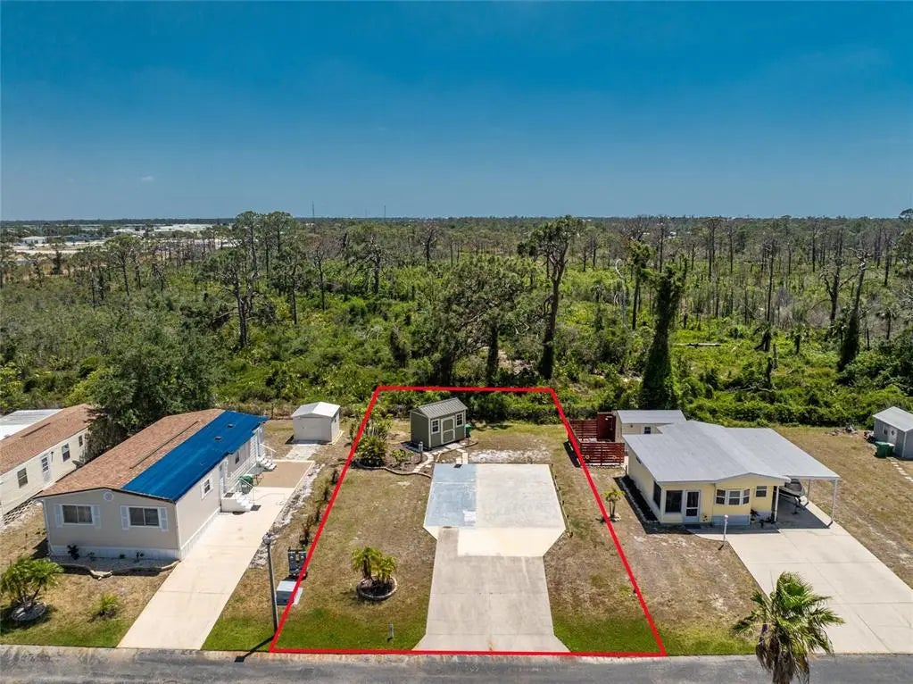 Vacant Lot with Gulf Access and Wooded Views in Popular Oyster Creek Mobile Home Park! Located in an active 55+ community in Englewood, this vacant lot backs up to the peaceful Oyster Creek Environmental Park, offering a beautiful wooded view and a quiet natural setting. For added peace of mind, the majority of the lot is located in the X flood zone. There is a spacious concrete pad that is ready for your mobile home, park model, or motor home and is equipped with city water, sewer, and has a newer cottage style shed for added storage. The low monthly fee covers lawn maintenance, a full-time property manager, clubhouse access, boat docks, and a separate storage area for your RV or boat. This pet-friendly and golf cart-friendly community features a private boat ramp, dock, and fishing pier with access to the Intracoastal Waterway and Gulf with only one bridge out, making it ideal for boating and fishing enthusiasts. Close by is the Ann Dever Memorial Park offers a public swimming pool, walking trails, picnic areas, and more outdoor recreation. You're also close to public golf courses, restaurants, shops, and world-class fishing of Charlotte Harbor and Boca Grande. Whether you're looking to enjoy the Florida lifestyle year-round or seasonally, this lot located at 20 Turtle Bay Circle in Englewood, Florida offers it all - location, amenities, and affordability.