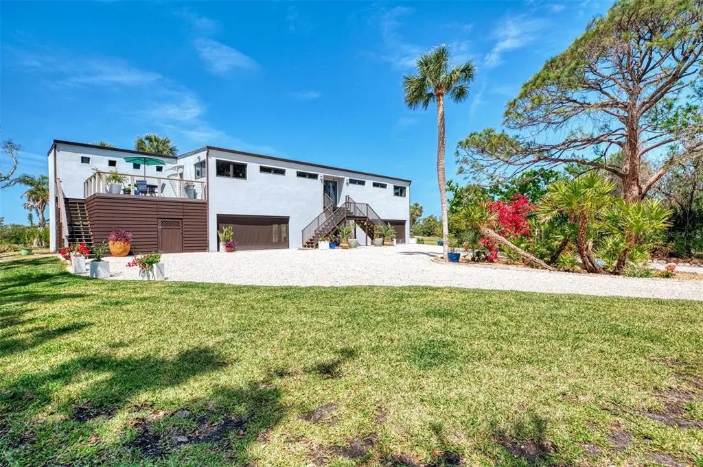 This is a modern design, 3br/3ba elevated home with a private lagoon and boat dock. Boasting 2 master bedrooms, all rooms have sliding doors that lead to the large lanai for plenty of light and stunning sunsets. There is a large open deck on the front of the house for relaxing and grilling. With a beautiful 2 acre lot, only 8 minutes by boat to Lemon Bay and a 5 minute drive to beautiful Manasota Key it has a 4 car garage with plenty of space for workshop and toys. The house was built with potential for an elevator to be installed leading up to the foyer. The owners call the lagoon “Manatee Lagoon” as they see manatees glide into their lagoon often. Bring your fishing poles as you can catch snook, sheepshead, grouper, and more, right from the dock! Built with all concrete, this home is rated to withstand 130 MPH winds. Cutouts in the garage allow any flood waters to flow in and out. Hurricane Milton was no match for this house with no damage. This property comes turnkey furnished. PLEASE NOTE: The owners have allimited monthly rental that a buyer can choose to honor or if the home is purchased before the rental starts, the owner can canncel the contract. Please call agent for more details.