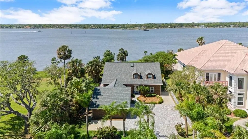 Beautiful remodeled RIVERFRONT POOL HOME offering the very best quality of life the area has to offer! Located directly on the Halifax River within walking distance of direct beach access, this warm and inviting coastal home is bursting with natural light, oversized bedrooms, a massive fenced backyard, and more than enough storage space for any family! Situated high enough to have no flood history with a 2021 roof, brand new paver driveway, 2021 and 2023 AC units, impact windows, hardwood floors throughout most rooms plus gorgeous tile in the remodeled granite kitchen with stainless GE appliances, eat-up island, custom dinette with wraparound bench, plus formal dining. This home has a HUGE first floor primary suite with two walk-in closets, beautiful ensuite bath with walkthrough shower, plus an extra den/office/gym space with views of the river. The first floor also features a music room and a riverfront office that could easily be used as a 4th bedroom. The 2nd floor has a large landing that would make for an excellent play space or secondary living room, two extra long bedrooms with views of the river, ABSOLUTELY STUNNING remodeled bathroom with dual vanity, walk-in shower, and modern standalone soaking tub. Besides the large closets in each bedroom, there is also a walk-in attic space for all of those extra decoration bins and much more. On the main level, the western living room has vaulted ceilings and windows on all sides allowing endless natural light to flow in. French doors open to the paver patio and pool deck before leading to the lush and large fenced backyard. This part of the Halifax River is breathtaking and is part of the Intracoastal Waterway so views will continuously include marine life like dolphins and manatees as well as boat traffic of all shapes and sizes throughout the year plus SUNSETS LIKE YOU CANNOT BELIEVE! Don't let this opportunity pass you by, once you live the easy life in a spot like this, you will never look back!
