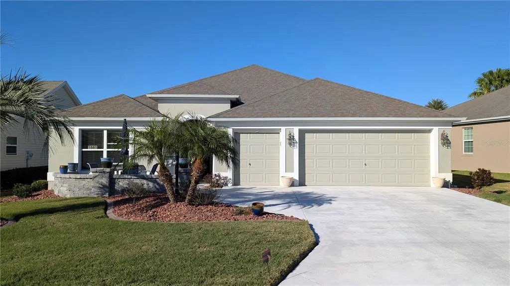 Welcome to this stunning 3-bedroom, 2-bathroom Iris model home located in the desirable Village of St. James in The Villages, Florida. Nestled in this highly sought-after active retirement community, this beautifully maintained property offers a perfect blend of comfort, style, and convenience. The open-concept living and dining room is filled with abundant natural light, creating a warm and inviting space perfect for entertaining or relaxing. Designed for functionality and style, the kitchen offers GRANITE countertops. upgraded appliances, ample cabinetry, and plenty of counter space for meal preparation. The large master bedroom features a private ensuite with dual sinks, a walk-in shower, and a spacious closet. Two additional well-sized bedrooms provides comfort and privacy for family or visitors. Step into your screened-in lanai and enjoy the Florida sunshine with your morning coffee or host evening gatherings in this serene outdoor space. A generous 2-car garage provides space for vehicles and additional storage, along with a dedicated golf cart garage—a must-have for getting around The Villages. With numerous upgrades and being sold TURN-KEY, this home is ready for you to move in and start enjoying The Villages lifestyle immediately. Don’t miss this rare opportunity to own a move-in-ready Iris model home in one of Florida’s most desirable 55+ communities. Schedule your private showing today and start living the lifestyle you’ve been dreaming of!
