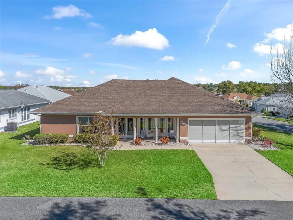 STONECREST is a 55+ Golf Course Community With All The Amenities, 4 pools (one indoor), and just a Bridge Away By Golf Cart To The Villages! Charming 2/2 Concrete Block and Stucco Key West model home features a 2 Car Garage with sliding screen doors, and is located on a nice size Corner Lot! This home offers Tremendous curb appeal with Low Maintenance Landscaping, a Front Porch with Sitting area, Gorgeous Columns, and an Elegant Double Glass Door entrance. As you enter into the home you are greeted by a Huge Open Floor plan, Vaulted ceilings, and plenty of Natural light! This Key West model great for entertaining family, and friends! The Kitchen opens to the dining area which offers sliding door access to the Enclosed Lanai, creating a spectacular Additional Living Space! The Primary suite offers a Walk in Closet, Two Double Closets, and En Suite bathroom. The En Suite bathroom showcases a Two sink vanity, and a Walk in Shower. Bedroom two features a nice size built in closet, and provides your guests with a comfortable space. Roof 2017, HVAC 2016. This Charming Concrete Block Key West home offers a Well Designed Open Floor Plan, and a Fantastic Location! Stonecrest is a 55+ gated golf course community with all the amenities, pools, pickleball courts, softball, 18 hole championship golf course, Broad Stripes Golf & Social Club and over 80 different clubs to join! Stonecrest is just a bridge away by golf cart to the Villages. It is a community with Private Roads and 24 Hour Security! As a private gated golf course community, you can expect a high level of privacy and security. Overall, this home offers a desirable location, and a secure community setting. A WONDERFUL LIFESTYLE AWAITS YOU IN STONECREST!