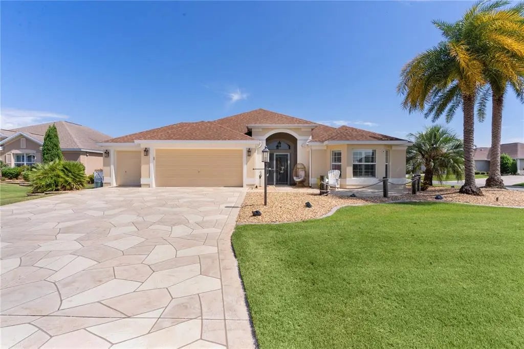 ~CUSTOMIZED EXPANDED 3/2 LANTANA~ ~41' HEATED LAP POOL~ ~ADDITIONAL 864 SQ FT ENCLOSED LANAI~ ~GOLF CART GARAGE~ ~TILE FLOOR THROUGHOUT~ ~2025 HOT WATER HEATER~ Private setting on CUL-DE-SAC in the Village of PINELLAS. Curb appeal shines with BRICK PAVER PATIO and painted STAMPED CONCRETE DRIVEWAY. Step inside to soaring ceilings, CROWN MOLDING, and custom lighting, including a designer chandelier in foyer, and elegant PORCELAIN TILE throughout most of the home. The living and dining areas feature recessed lighting, with ceiling fan in the living room, and elevated ceilings in the dining room, creating a bright and open feel. The kitchen is thoughtfully fitted with an LG cooktop and 2024 GE wall oven plus a brand new microwave. Also out of the ordinary, the refrigerator is housed with custom panels to match upgraded cabinetry and the dishwasher is a 2024 BOSCH. Tasteful GRANITE countertops & backsplash provide pizzazz. The primary retreat with vaulted ceiling and PLANTATION SHUTTERS, is completed by a luxurious ensuite featuring walk-in closet, QUARTZ counters, ROMAN-STYLE TILED SHOWER, and private water closet. Two spacious guest rooms include PLANTATION SHUTTERS, and stylish ceilings—one guest room is equipped with a MURPHY BED and tray ceiling. The guest bath impresses with a WALK-IN SHOWER, QUARTZ vanity, and high ceilings. Additional features include a 2024 WASHER/DRYER, laundry room with cabinetry and built-in desk. This beautifully upgraded home boasts a 41-ft LAP POOL with waterfall and jets, custom finishes, and an expanded glass-enclosed lanai ADDING 864 SQ FT of climate-controlled living space with ceramic tile, custom telescoping sliding doors, motorized blinds, and 2 mini-splits. A spacious 2-CAR plus GOLF CART GARAGE features MOTORIZED RETRACTABLE SCREENS, painted floors, attic stairs, and a laundry tub. ROOF, HVAC are 2013. This rare find combines elegance, function, and outdoor luxury! Close to all shopping, restaurants at CR 466A & Powell. Minutes from Evans Prairie Country Club, Eisenhower Regional Rec Center, and several executive golf courses. Just a short golf cart ride to Brownwood Town Square.