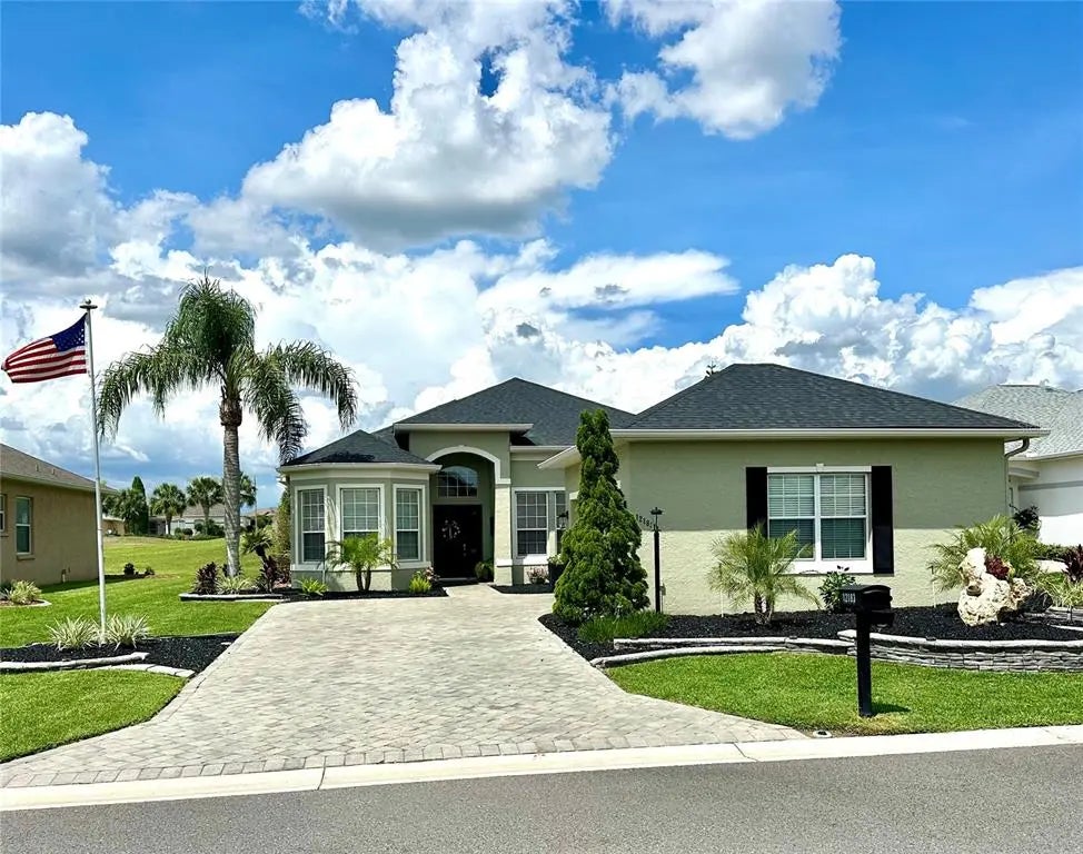 Under contract-accepting backup offers. Welcome to beautiful STONECREST a 55+ golf and country club community! Gorgeous golf course front home is located in in the desirable Links 3. St. George model with glass enclosed lanai brings the total living space to approx. 2100 Sq. ft. plus an additional bird cage with beautiful relaxing fountain situated on the 17th tee box! From the moment you walk into the foyer you will be impressed with the grand stature of the 12 ft ceilings and beautiful architecture. This stunning home has been completely updated and renovated with a NEW ROOF 2025, NEW HVAC 2024, NEW FLOORING 2025, NEW LANDSCAPING 2025, NEW EXTERIOR PAINT 2025, NEW GRANITE 2025, NEW INTERIOR PAINT 2024, stainless appliances, crown molding throughout, extended 2 car garage with additional golf cart area. Stonecrest is a lovely golf cart community with access to all your favorite shopping and The Villages just minutes away by cart! Enjoy this lovely community with low association fees, NO BONDS or additional unexpected annual maintenance fees. Stonecrest boasts 4 swimming pools (one indoors) hot tub, pickleball and tennis courts, newly renovated fitness center, softball field, dog parks, walking trails, community center and over 90 groups offering something for everyone!