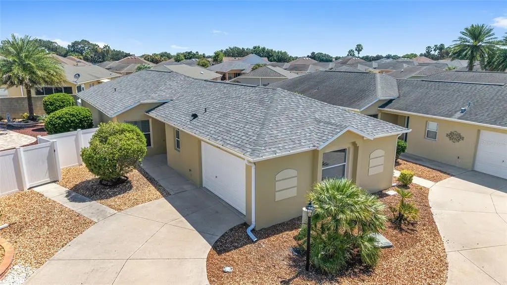 One or more photo(s) has been virtually staged. QUICK CLOSE AVAILABLE***NEUTRAL EXTERIOR PAINTING 7/28/2025!!! BRAND NEW ROOF JUNE 2025 ON THIS BEAUTIFULLY UPDATED!!! LOCATION LOCATION LOCATION!! 3 BED / 2 BATH FOXGLOVE COURTYARD VILLA in the highly desirable VILLAGE OF TAMARIND GROVE! This BLOCK & STUCCO villa is the perfect blend of COMFORT and CONVENIENCE. Featuring NO CARPET THROUGHOUT, the home offers a modern, EASY-TO-CLEAN, LOW MAINTENANCE YARD. LUXURY VINYL PLANK FLOORING in the main living areas and TILE in the kitchen and laundry room. VAULTED CEILINGS W/ NO POPCORN THROUGHTOUT THE MAIN LIVING AREA AND PRIMARY BEDROOM. The kitchen shines with BRAND NEW STAINLESS STEEL APPLIANCES, QUARTZ COUNTERTOPS AND PULL-OUT SCHELVES in the cabinets, and a PANTRY CLOSET making meal prep a breeze while adding a touch of CONTEMPORARY ELEGANCE. INSIDE LAUNDRY w/ tub sink and the garage is big enough to fit your car and golf cart! NEW HOT WATER HEATER 2023 Enjoy your PRIVATE, ENCLOSED BACKYARD W/ ADDED PERGOLA — a serene retreat ideal for RELAXING, GARDENING, or ENTERTAINING. This LOW-MAINTENANCE home is MOVE-IN READY and provides an effortless lifestyle in one of The Villages’ most CENTRAL LOCATIONS. IN THE VILLAGE OF TAMARIND GROVE is ideally situated between LAKE SUMTER LANDING and BROWNWOOD PADDOCK SQUARE, just a short golf cart ride to shopping, dining, golf, and recreation. You're also close to the Sterling Heights Rec Center, Seabreeze Rec Center, and Bonita Pool. Don't miss the opportunity to live in this PRIME LOCATION, start living The Villages Lifestyle! Schedule your showing today and make this STYLISH, LOW-MAINTENANCE VILLA your new home! LOW BOND BALANCE OF $9,421.74