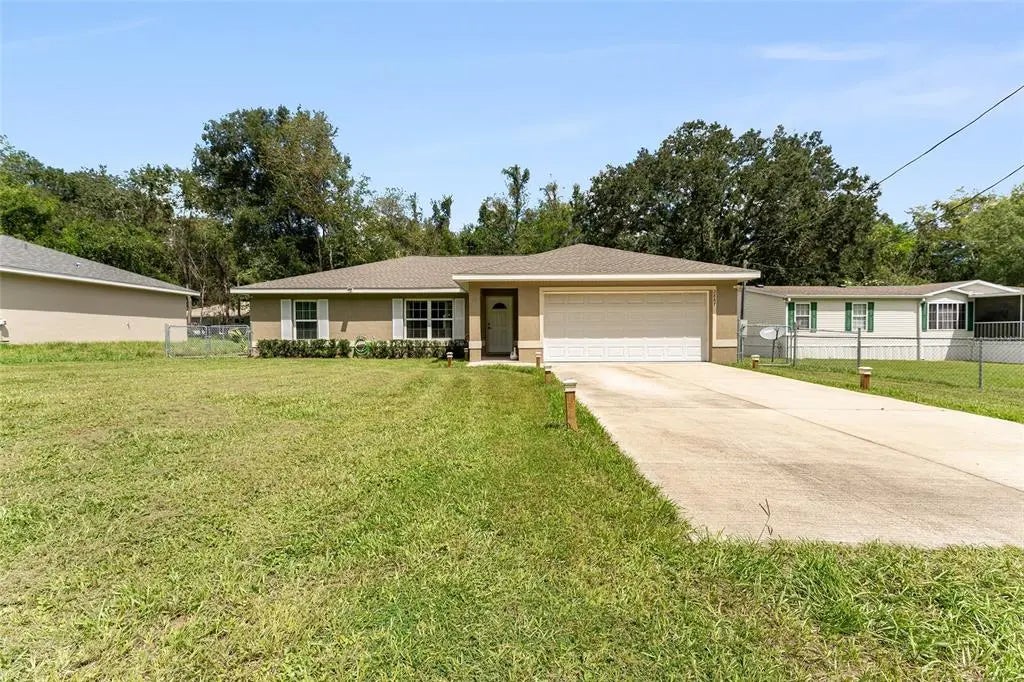Welcome to this very well maintained Block/stucco home consisting of 3 bedrooms, 2 bath with attached 2 car garage. Beautiful cabinets compliment the gorgeous kitchen. Appliances include Refrigerator, Range with hood and Dishwasher. Walk-in closet in Master. Tile and Carpet floors. High Efficiency windows. Storage shed in fenced back yard only 1 year old. Conveniently located just minutes to The Villages, Belleview and Ocala for all your dining and shopping needs.