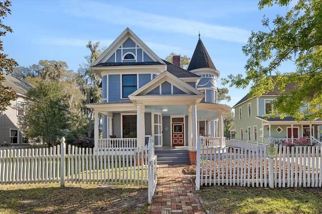 Welcome to The Hodges House, a historic mansion turned QUADPLEX! Built in 1887 and retaining most of its original charm, this is a multifamily investment property like no other. You’ll be blown away by the incredible attention to detail and the timeless victorian architecture, including the one-of-a-kind turret, making this historic home feel more like a fairytail castle. As you walk across the curved front porch you’ll notice the original post office boxes still present by the front door. As you enter the grand hall, you’ll find original hardwood floors, soaring ceilings, and a charming fireplace. To the left is the first unit, and up the staircase you’ll find two more. Outside, and around the corner you’ll find a fourth unit with its own dedicated entrance. All units are 1 bedroom, 1 bathroom apartments with private kitchens and living rooms. However, no two are alike- each unit represents its own unique charm and character. Two of the units feature gorgeous, circular living spaces located within the turret. Currently, these units rent individually as short and mid term rentals, fetching $1900-2300 a month depending on season and length of stay. This has dropping property features on street property and is walking distance to downtown Gainesville, depot park, and so much more. This price includes the installation of a brand new roof prior to closing.