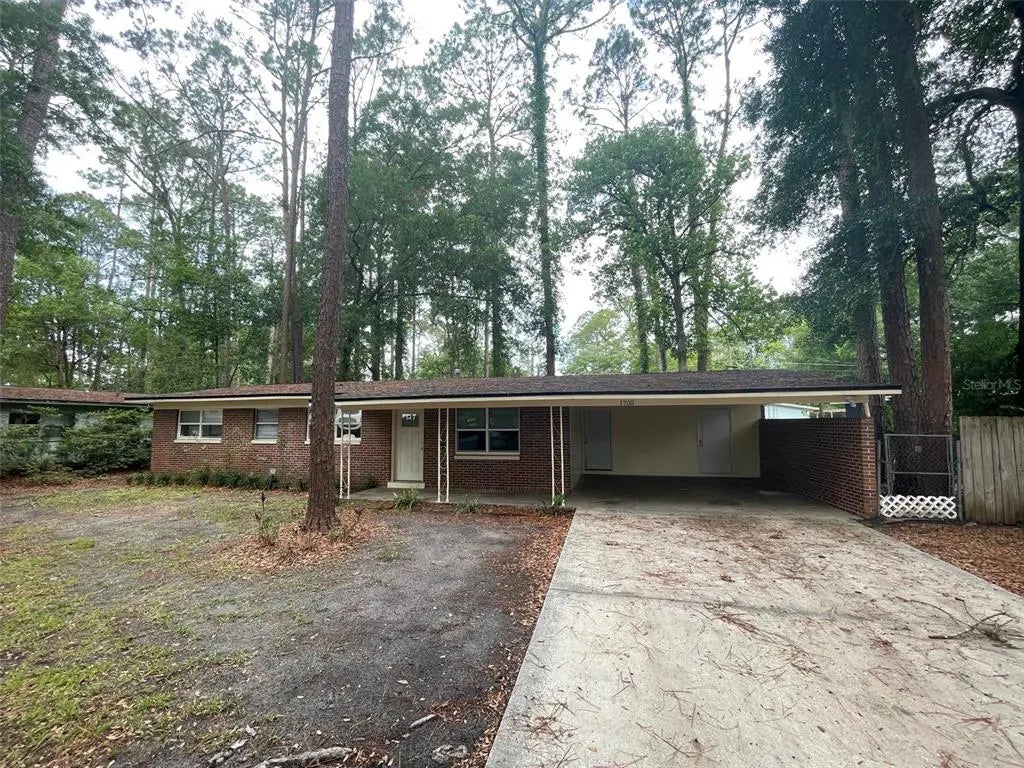Under contract-accepting backup offers. This low-maintenance brick home offers both comfort and convenience, featuring a 2022 roof and updated windows for added efficiency and peace of mind. Inside, you'll find two spacious living rooms, a huge dining area perfect for gatherings, and a generously sized laundry/utility room. With three large bedrooms and two full bathrooms, there’s plenty of space for everyone. The home is entirely carpet-free, making cleaning a breeze. Outside, a two-car carport provides ample covered parking. Located just minutes from downtown Gainesville, 10 minutes to the University of Florida, and near Tom Petty Park, this home is ideally situated for both work and play.