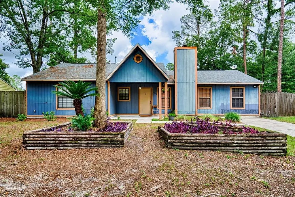 Under contract-accepting backup offers. Welcome to Springtree, a fantastic and popular NW Gainesville neighborhood with mature gorgeous trees, friendly neighbors, no HOA, and right off NW 39th Ave but tucked back so you can enjoy the sounds of birds. This home location is optimal on a cul-de-sac shaded by a treelined street and has a shaded front yard and a sunny backyard with landscaping and POOL! The backyard is such a perfect size, already landscaped with garden beds producing veggies, native plants, grass space, and of course the pool deck and a removable pool safety fence providing reassurance but still giving you an enticing view. There is also a shed for storage in the backyard for your yard tools and pool toys! The home received a new roof in 2023. Inside the home you will love the living room with its stone fireplace and additional den area. This 3-bedroom 2-bath home is quaint and wonderfully comfortable with ceiling fans throughout, a screened in porch for additional living space, and the backyard and pool provide so much enjoyment. The location within Gainesville and the Springtree neighborhood is superb!