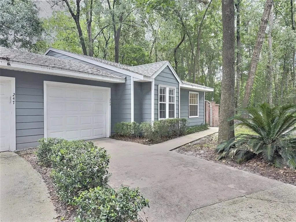 Welcome to this beautifully maintained one-story condo offering the perfect blend of comfort and convenience. This 2-bedroom, 2-bathroom home features stylish granite countertops in both the kitchen and bathrooms, adding a touch of luxury throughout. The kitchen features a counter height bar, giving the kitchen an open feel. The master bath includes dual sinks and tub. The master closet is a large walk-in closet with plenty of space. The second bedroom is perfect for guests, a home office, or hobbies. Unlike many condos, this one has an attached one-car garage and a driveway. Enjoy stress-free living with an HOA that covers exterior maintenance, roof upkeep, and regular pressure washing. This property is in prime location, directly across from Gainesville Health & Fitness and a short drive from The Oaks Mall, HCA North Florida Hospital, and less than 10 min from UF! Whether you're a first-time buyer, downsizing, or looking for a turnkey investment, this move-in ready condo checks all the boxes. Schedule your private tour today!
