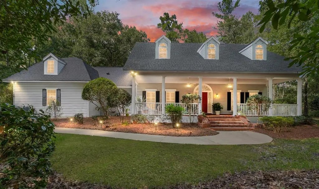 Asheville meets Gainesville! This storybook Southern charmer sits tucked beneath a canopy of trees, with a 40' front porch that feels like it was made for rocking chairs and long conversations. The large entry welcomes you into a home that balances classic style with everyday comfort. Inside, natural light filters through plantation shutters, highlighting warm wood accents and a thoughtful floor plan (see floor plan in photos) - including a large MUDROOM/drop-zone and walk-in pantry. The living spaces are open yet inviting, with room for gatherings both big and small. The kitchen flows easily into the heart of the home, offering a place to cook, connect, and create memories. Step outside to enjoy the peaceful setting — on your 38' screened lanai, surrounded by a FULL ACRE of greenery and the quiet of nature, yet close to all that Gainesville has to offer (3 minutes to PUBLIX, Santa Fe College or I-75, 9 minutes to North Florida Hospital, 13 minutes to UF's Levin College of Law, 15 minutes to "THE SWAMP"). Downstairs the Primary Suite opens to the covered and screened lanai that stretches across the back of the of the home, perfect for relaxing at the end of the day. Upstairs, the guest bedrooms and bathrooms feature dormer windows add charm and character. Brick steps, a winding walkway, and established landscaping complete the picture, making this home as welcoming outside as it is inside. The GATED community of "The Sanctuary" is just that - a place that feels both timeless and unique. Come experience it in person! Video: https://youtu.be/38oS_kjrgNo