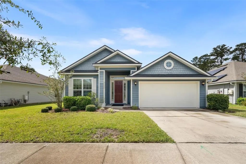 Under contract-accepting backup offers. Welcome Home! Step into this impeccably maintained, much-loved residence in highly sought-after Weschester community, perfectly located in NW Gainesville—just a quick drive to the University of Florida, UF Health, NFRMC, the Oaks Mall, and endless shopping and dining options. Built in 2019, this home offers nearly 2,000 sq. ft. of heated/cooled living space and over 2,600 sq. ft. under roof with a beautiful, open layout featuring 4 bedrooms and 2 bathrooms. High ceilings and thoughtful design create a bright, airy feel throughout. From the welcoming foyer, you’ll find a versatile fourth bedroom with double doors, ideal as a guest room, office, or flex space. The foyer flows to a formal dining area and into the gorgeous kitchen, where you’ll love the abundance of cabinetry with tons of pot and pan drawers, a large island, and transom windows that bring in extra light. Stainless steel appliances include a deluxe refrigerator with a bottom freezer and veggie drawer, plus a double-oven range—a cook’s dream. The spacious great room opens through triple sliding doors to a screened-in porch with LVP flooring, overlooking a manicured, fenced backyard—perfect for relaxing or entertaining. The primary suite offers a walk-in closet and spa-style bath with a large walk-in shower with seating and dual vanities. Two additional bedrooms share a well-appointed guest bath on the other wing. Additional highlights include LVP flooring in main areas, double step-tray ceilings, cellular shades, six-panel interior doors, gutters, tankless water heater, fencing, and a separate laundry room. Weschester is a low-HOA community with endless sidewalks, serene ponds, a sparkling community pool, and a playground. This home is move-in ready and waiting for its next owner to love it just as much. Washer/Dryer convey. Call today to schedule your private showing!
