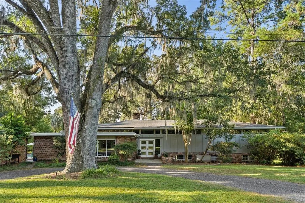 Tucked away at the end of a private street, this beautifully updated mid-century modern pool home offers nearly 4,000 square feet of stylish living space, all set on a stunning one-acre lakefront lot in the heart of Gainesville.