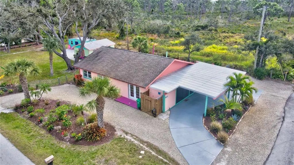 Under contract-accepting backup offers. This entirely fenced in compound (NON-HOA) sits a stone’s throw to Lemon Bay & Don Pedro, while being directly across from Palm Island Ferry and abuts the 33-acre Charlotte Harbor State Preserve. This unique private coastal Florida 3-bedroom, 2 ½ bath UPDATED SFH sits on a 0.35 acre, DOUBLE oversized corner lot (15,235 SqFt) with a detached Studio/Guest House AND another detached Casita (workshop/shed). All 3 units are completely under-air with BRAND NEW HVAC SYSTEMS! This property has the Old Florida character and charm with an abundance of upgrades and limitless opportunities! Updates include: BRAND NEW IRRIGATION SYSTEM FOR PROPERTY (2023); NEW 50 GAL HOT WATER HEATER (2023); NEW INTERIOR & EXTERIOR PAINT (2022); NEW PAVERS (2022); NEW MINI-SPLITS added to Guest-House and Workshop (2024); NEW WHOLE HOUSE WATER SOFTENER SYSTEM; NEW KITCHEN R.O SYSTEM; NEW LANDSCAPING (nearly 200 plants, over 50 hibiscus!); 5-yr NEW SHINGLE ROOF; BRAND NEW FRONT SCREENED LANAI; IMPACT WINDOWS (all 3 dwellings); NEW IMPACT FRENCH DOOR (off kitchen); NEW POOL PUMP; Blown insulation in attic; NEW ELECTRICAL PANEL; Septic pumped 2023; updated kitchen with granite countertops; wooden cabinetry featuring crown molding, glass shelving, tile backsplash, stainless steel appliances, pantry closet and a tall counter perfect for entertaining or enjoying a Vino! All bathrooms are newly updated with full tile and glass showers, new vanities and new high toilets. The spacious Primary en suite has French doors opening out to the new paver patio with the 10x5 bobbing POOL. This is the most relaxing Pool you'll ever see, complete with mosaic tiles! There is even a custom-built outdoor shower (to rinse off from the beach). This tropical backyard is more of an Oasis and has plenty of room for ALL of your outdoor toys- RV, boat(s), Jet-skis, kayaks, etc.! The Studio/Workshop and Casita are BOTH FULLY INSULATED, impact windows and equipped with their own mini-splits! Conveniently located to multiple marinas, restaurants, Publix; walking distance to the water taxi to Rum Bay, the Palm Island Ferry, Don Pedro Island/Kayak Launch, Cape Haze and more! Only a short distance to Boca Grande! This is a MUST SEE property! Motivated Sellers! If you have been searching for a unique property, well here it is! You will not find this again, call today for your private showing!