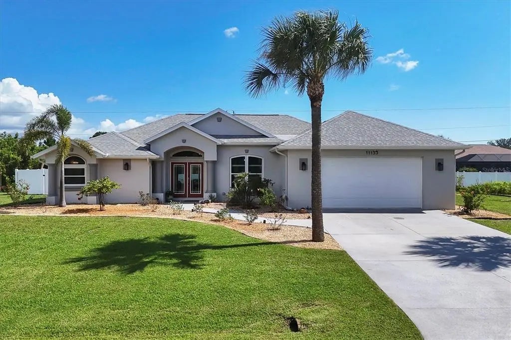 Under contract-accepting backup offers. On three LOTS! This amazing pool home is centered on 2 lots PLUS a BONUS LOT featuring a shed with roll up doors and electric as well as a driveway, perfect for RV (RV outlet too) or Boat parking. Not in a flood zone, no flood insurance required! NO HOA fees. Newer hurricane rated windows, sliders and doors. 2 of the bedrooms, living room and dining room have pocket sliding doors that fully open to the pool area. 70" TV and beautiful fireplace in living room. Pool area has LOTS of room and an outdoor shower. Back yard is fully fenced with a separate dog run. Separate air conditioned storage room in garage, Rainbird irrigation system with newer well pump, whole house surge protection, solar cover for heated salt water pool, 2020 roof, 2025 water heater, 2020 A/C, septic pumped 2025, fresh paint inside/out. Only 15 min to the beaches! This home is gorgeous! Absolutely MOVE IN READY!