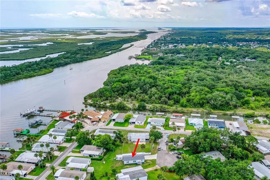 This new home checks all the boxes, OWN YOUR OWN LAND, Palm Trees, Property and Unlimited potential...Imagine, Turn Key 3 bedroom, 2 bath home offering an updated modern kitchen, a culinary delight with an abundance of counter and storage space. Enjoy the split floor plan as the double paned french doors accent the open floor plan. an abundance of closet space, oversized bedrooms, new laminate flooring and a dry bar area that compliments this home. Oversized entry stairs and much more add to the unstoppable features of this home. The crown molding throughout the home flairs a modern appeal. New roof installed April 2023. The home is situated on a private cul da sac which neighbors along a river front road.....Unbelievable!!! NON FLOOD ZONE, This golf cart community offers many amenities. Heated salt water riverfront pool with community clubhouse. An additional salt water pool is nestled along the outdoor shuffleboard courts. Complimenting the community is ability to lease anew boat slip complete with a wench lift kit, new 300 foot fishing pier, boat launch, engine flush area, RV on-site storage area (at an additional fee) community BBQ Grill, bocci court an on site laundry room and much more. Enjoy the relaxing lifestyle in this sleepy fishing village. This community has a low monthly amenity fee of $250. Community background check required. Whether you make this is your full time, part time or rental investment property this 2018 fully furnished home is a sheer delight. ;Water:& Sewer City Additionally a new RV Shed offering a roll down door as well as new pathway were recently installed.
