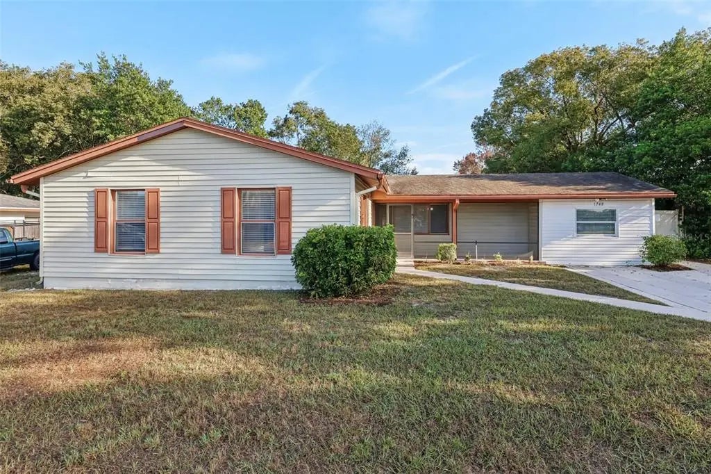 Under contract-accepting backup offers. 3-bedroom, 2-bathroom home located in the heart of Deltona. Offering 1,161 sq ft of heated living space on a 7,500 sq ft lot, this home features a split-bedroom layout with both a spacious living room and a separate family room for added flexibility. The kitchen is outfitted with stainless steel appliances, solid wood cabinetry, and a tiled backsplash, making meal preparation a breeze. Both bathrooms have been thoughtfully updated with modern fixtures and stylish tilework. Step outside to enjoy the enclosed screened porch and additional backyard deck, perfect for entertaining or quiet relaxation. The property includes a detached laundry room and a storage shed for added convenience. Nestled in Deltona Lakes Unit 72, this home is just minutes from schools, parks, shopping, and dining, with easy access to Providence Blvd and other major routes. Don't miss your chance to make this well-maintained property your next home.