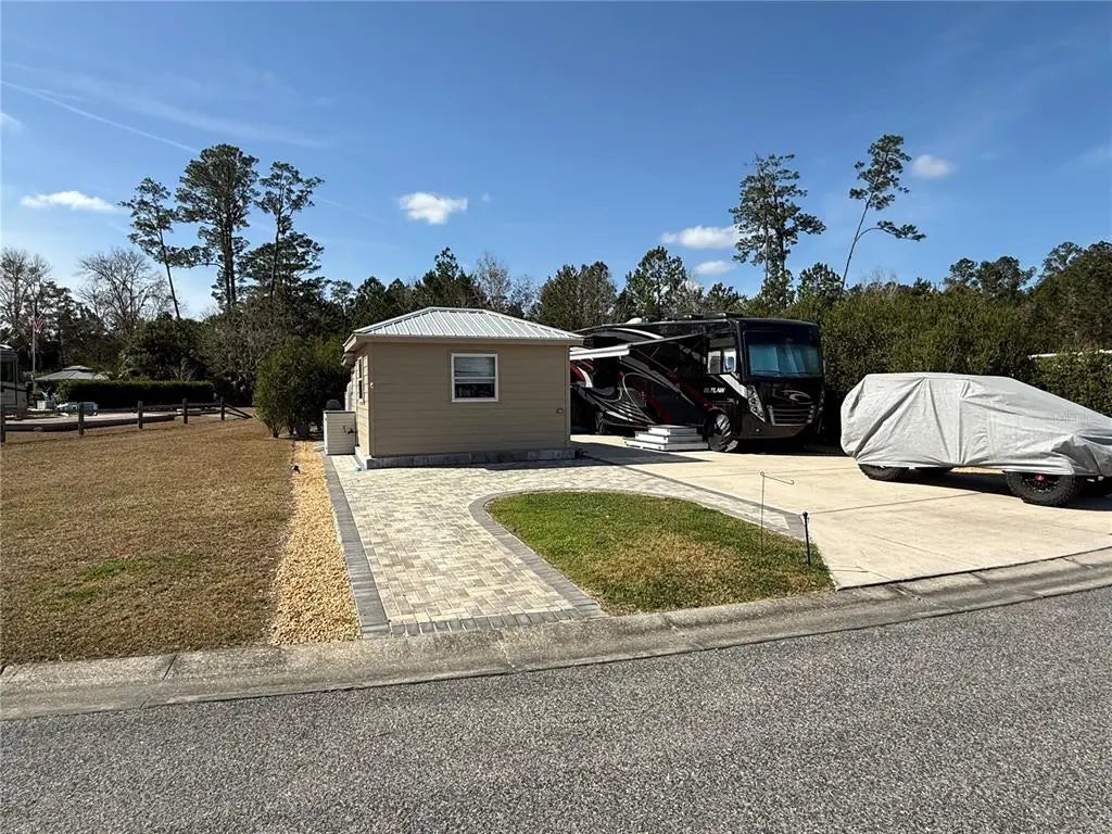 Discover the perfect getaway at this unique reverse pie-shaped deeded RV lot in the highly sought-after Wilderness RV Resort! This exceptional lot is wider at the road and features an easement buffer on the left for added privacy. Mature bottlebrush hedges on both sides enhance the seclusion, creating an intimate oasis for relaxing nights around the huge paver fire pit. Additional paver parking ensures convenience for you and your guests. Outdoor living is taken to the next level with double screened gazebos with power, offering the perfect space for entertaining. The outdoor kitchen, complete with a TV, refrigerator, and ample counter space, makes meal prep a breeze—plus, you'll love cooking on the gas stove under the stars. With all these amenities, your RV will be just for sleeping! Wilderness RV Resort offers a premium lifestyle with clubhouse amenities, a heated pool, nature trails, and direct access to the Ocklawaha River, perfect for kayaking and fishing. Located just minutes from historic downtown Ocala, you'll enjoy world-class dining, shopping, and entertainment at The Square. Plus, adventure awaits at the nearby Silver Springs State Park, famous for its crystal-clear spring waters, glass-bottom boat tours, and abundant wildlife. Don't miss this rare opportunity to own a one-of-a-kind RV lot in an unbeatable location!