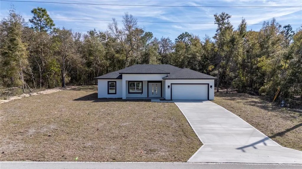 Seller is giving $5,000 in closing costs! BRAND-NEW CONSTRUCTION, MOVE-IN READY! Discover this stunning and spacious 3-bedroom, 2-bath home with a 2-car garage, thoughtfully designed for comfort and modern living. Step onto the inviting covered front porch and through the elegant double entry doors into a bright and open floor plan. The living area is at the front, while the kitchen and dining spaces flow seamlessly toward the back, creating the perfect space for entertaining. This home boasts luxury vinyl plank flooring, quartz countertops, stainless steel appliances, 42" cabinets with crown molding, and a large kitchen sink. The spacious island with a breakfast bar and built-in pantry add both style and functionality. A separate indoor laundry room includes a stainless steel sink, quartz countertop, and an extended shelf for extra storage. The primary suite is a bright and airy retreat, featuring two windows for natural light, a generous walk-in closet, and an ensuite bathroom. The primary bath is designed with dual sinks, a tiled shower, and a private water closet. The second and third bedrooms are situated on the opposite side of the home, with a stylish guest bathroom between them, complete with a quartz countertop and tiled tub surround. Through the sliding glass doors, step onto the expansive covered lanai, spanning over half the width of the home, perfect for outdoor relaxation. Enjoy morning coffee on the front porch and sunsets from your private lanai in the evening. Located near the Withlacoochee Trail, Withlacoochee River, golf courses, and Gulf Coast boat ramps, this home offers the perfect blend of tranquility and adventure. Schedule your showing today, you won't want to miss this one!
