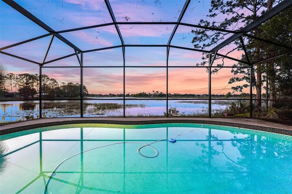 Fisherman’s dream, bird watcher’s paradise, and the perfect spot for gorgeous sunsets every day! Welcome to your very own slice of lakefront paradise—this 3-bedroom, 2-bath ranch-style retreat sits on a generous 0.33-acre lot with direct access to the sparkling waters of Lake Louise. Perfect for those who love both relaxation and entertaining, the home offers a spacious, well-thought-out layout with a formal living room and a cozy family room—both sharing the warmth of a stunning double-sided wood-burning fireplace. Step outside to enjoy Florida living at its best: take a refreshing dip in your screened-in pool, or lounge on the covered back patio while soaking in tranquil lake views and spotting local wildlife. With breathtaking sunsets painting the sky each evening, you’ll never want to leave. Recent upgrades include a new roof (2023) and brand-new gutters (2025) for added peace of mind. The side-entry garage and extended driveway provide ample parking. Inside, you’ll find a large kitchen, dedicated dining room, and plenty of storage—ideal for gatherings big or small. Launch your boat right from your backyard to reel in the catch of the day, or simply float out on the water as the sun dips below the horizon. Whether you’re a passionate angler, a bird enthusiast, or just someone who appreciates nature’s beauty, this home offers it all. Don’t miss this rare opportunity to own a Lake Louise gem—schedule your private showing today!