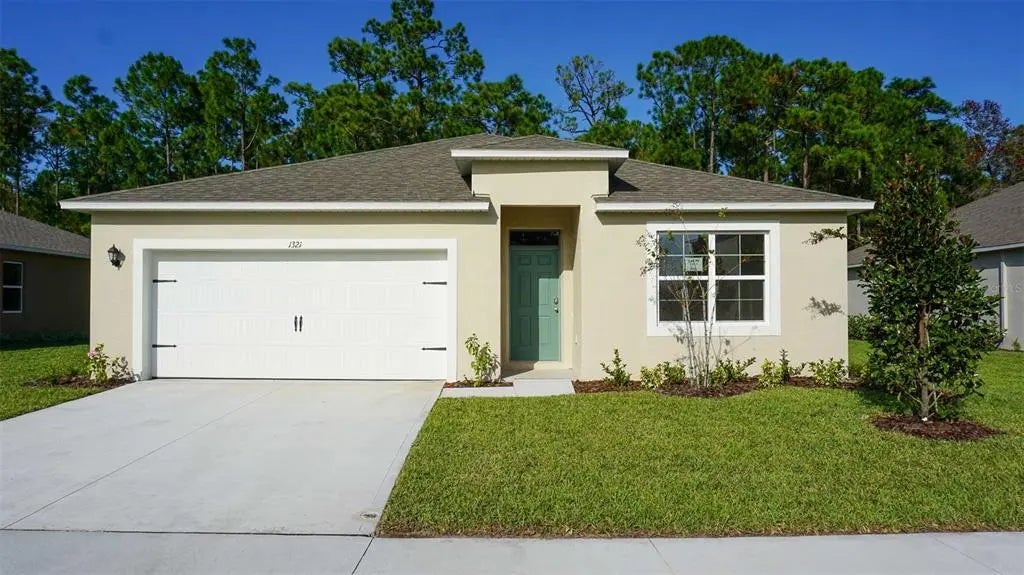 The popular one-story Cali floorplan offers 4-bedrooms, 2-bathrooms, a 2-car garage with 1,882 sq ft of living space. The open layout connects the living room, dining area, and kitchen, ideal for entertaining. The kitchen boasts quartz countertops, stainless-steel appliances, a walk in pantry and a spacious island. The four spacious bedrooms gives flexibility for various lifestyles. The primary suite located in the rear of the home features a private ensuite bathroom with dual sinks, a separate shower, and a walk-in closet. The remaining three bedrooms share one well-appointed bathroom, making morning routines a breeze. Laundry room is convenient to all bedrooms. This all concrete block construction home also includes smart home technology for control via smart devices. *Photos are of similar model but not that of exact house. Pictures, photographs, colors, features, and sizes are for illustration purposes only and will vary from the homes as built. Home and community information including pricing, included features, terms, availability and amenities are subject to change and prior sale at any time without notice or obligation. Please note that no representations or warranties are made regarding school districts or school assignments; you should conduct your own investigation regarding current and future schools and school boundaries.*