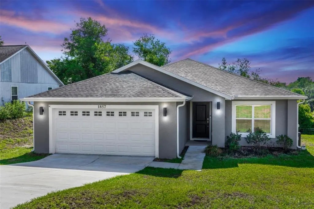 ** PRICE IMPROVEMENT ** Welcome to your dream home in Deltona, Florida, built in 2022! This stunning 3-bedroom, 2-bathroom residence with a 2-car garage boasts modern elegance and functionality. The open-concept design floods the home with natural light, highlighting the gorgeous kitchen featuring grey soft-close cabinets, granite countertops, and stainless steel appliances (included). Tray ceilings add sophistication throughout, including in the spacious master bedroom, which offers a luxurious retreat. Enjoy tile flooring in high-traffic areas, plush carpet in bedrooms, and walk-in closets in every bedroom. Situated on nearly a quarter-acre lot, this home includes a newly screened-in lanai, a security system, and a new water softener. The garage features a Nemo 1450EV charger for electric vehicles and RVs. With city water and septic for low water bills, this home is perfectly located between Orlando and Daytona Beach, near Blue Heron Nature Park. Don’t miss this move-in-ready gem!