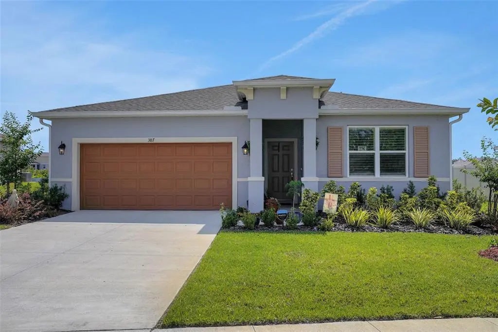 The Juniper model is a modern and practical home with a two-car garage, outdoor lanai, main level bedrooms, dual vanity bathroom, walk-in laundry room, open concept kitchen and dining area, 17x17 family room, patio, and covered lanai. Tiled through main living and carpet in bedrooms. This home is better than brand new and the seller added a well for sprinkler, window coverings and gutters.
