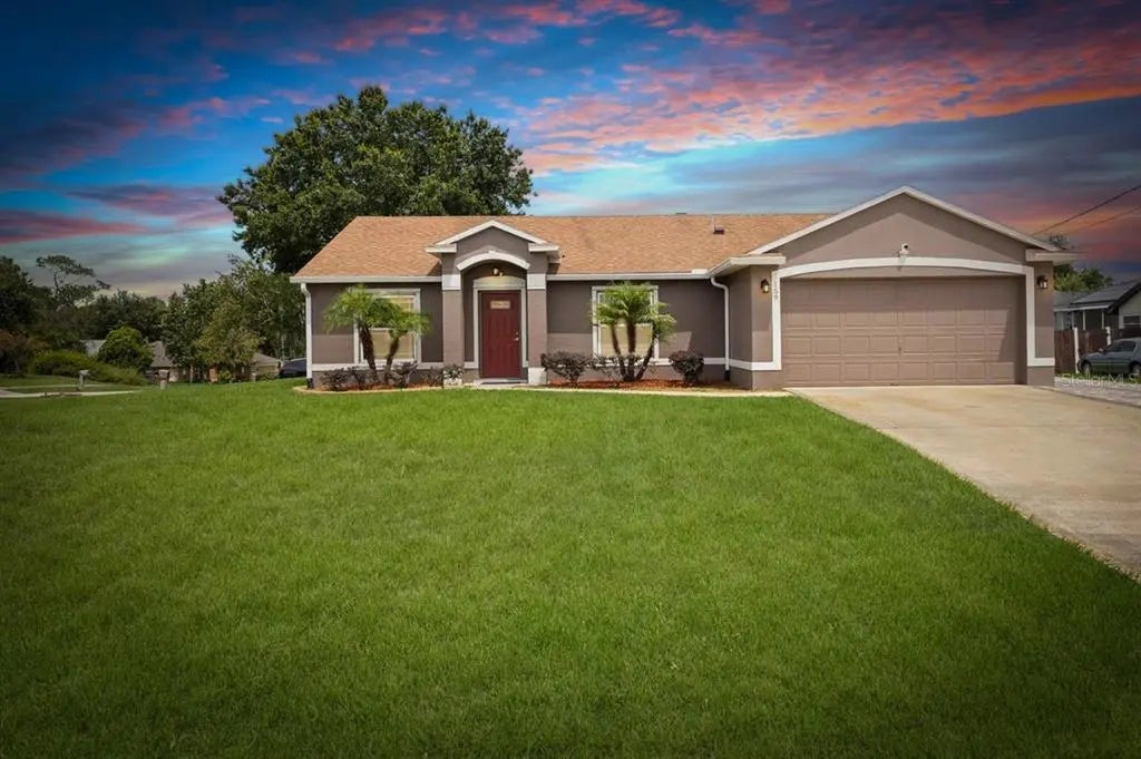 One or more photo(s) has been virtually staged. Welcome to 159 Larchmont Drive, a beautifully upgraded home in the heart of Deltona featuring a thoughtfully designed layout and high-end finishes throughout. The gourmet kitchen is the centerpiece of the home, showcasing quartz countertops, custom cabinetry, a wide-basin American Standard stainless sink, and premium KitchenAid stainless steel appliances—including a cooktop and convection microwave—all overlooking the spacious and open living room, perfect for entertaining. The primary suite offers hardwood flooring, upgraded baseboards, and a remodeled en-suite bath with a granite vanity and a glass-enclosed walk-in shower featuring elegant custom tilework. The guest bath includes its own granite vanity and a stand-up shower, while the additional bedrooms feature durable LVP or laminate flooring. A custom built-in entertainment center highlights the family room, and the interior laundry room comes equipped with its own sink. Recent upgrades include a 2024 Rheem HVAC system, AO Smith Signature 100 water heater, Nest climate control, Vivint security system with five cameras, and speckled epoxy garage floors. Outside, enjoy a 9' x 24' custom paver patio and an impressive 14' x 50' pavered RV pad, fully equipped with conduit and power—an ideal setup for RV parking, a workshop, or future outdoor living expansion.