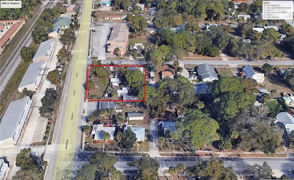 Fantastic investment opportunity on nearly half an acre (.48) at the corner of Hopkins Ave and Pritchard Rd in Titusville. This location is part of Brevard County's Commercial Community (CC) zoning district which is intended to provide businesses that service a daytime work population and nearby residential areas within a planned and architecturally unified development. Specific uses should be verified with the county. This 1,230 sq ft single-family home sits on a high-visibility corner lot with endless potential—whether you're looking to renovate, hold as a rental, or explore future redevelopment. The property offers ample yard space, mature trees, and convenient access to major roadways, shopping, and the Indian River. Don’t miss your chance to invest in this growing Space Coast market!