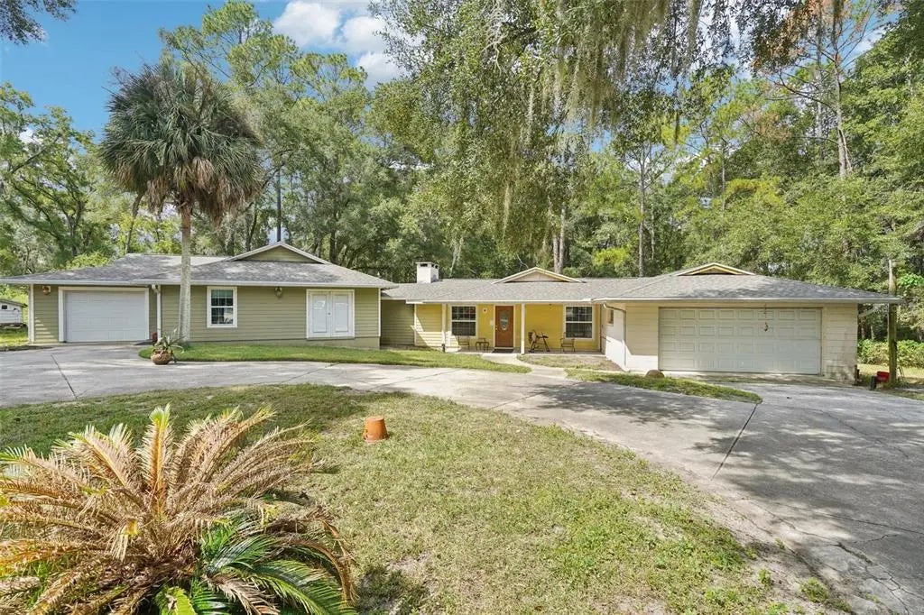 Welcome to this spacious 4-bedroom, 4-bathroom home offering 2,800 square feet of living space on a private 1-acre lot in Gainesville. In 2006, an addition was built, expanding the home and adding even more functionality to the layout. A gated entrance opens to an oversized circular driveway and split 3-car garage, setting the tone for both convenience and privacy. Step inside to a split-level floor plan designed for comfort and functionality. The main level features a generous living room anchored by a stone fireplace, perfect for gatherings. The kitchen offers stone countertops, solid wood cabinets, and ample space for meal preparation. Two bedrooms and two full bathrooms are also located on this level. Just a few steps up, you’ll find another expansive living area along with the primary suite. The suite includes a versatile office space, walk-in closet, and en suite bathroom with dual sinks, a soaking tub, and a walk-in shower. An additional bedroom on this floor has its own private full bath, ideal for guests or extended living. Recent updates include a new roof and a new deck, adding peace of mind and outdoor enjoyment. With no HOA, you’ll enjoy flexibility and privacy. This home’s location is another standout feature. You’ll be close to the University of Florida, grocery stores, dining, and everyday conveniences, while nearby state parks provide opportunities to explore and enjoy nature. Blending space, updates, and a prime location, this property is ready to welcome its next owner. Mortgage savings may be available for buyers of this listing.