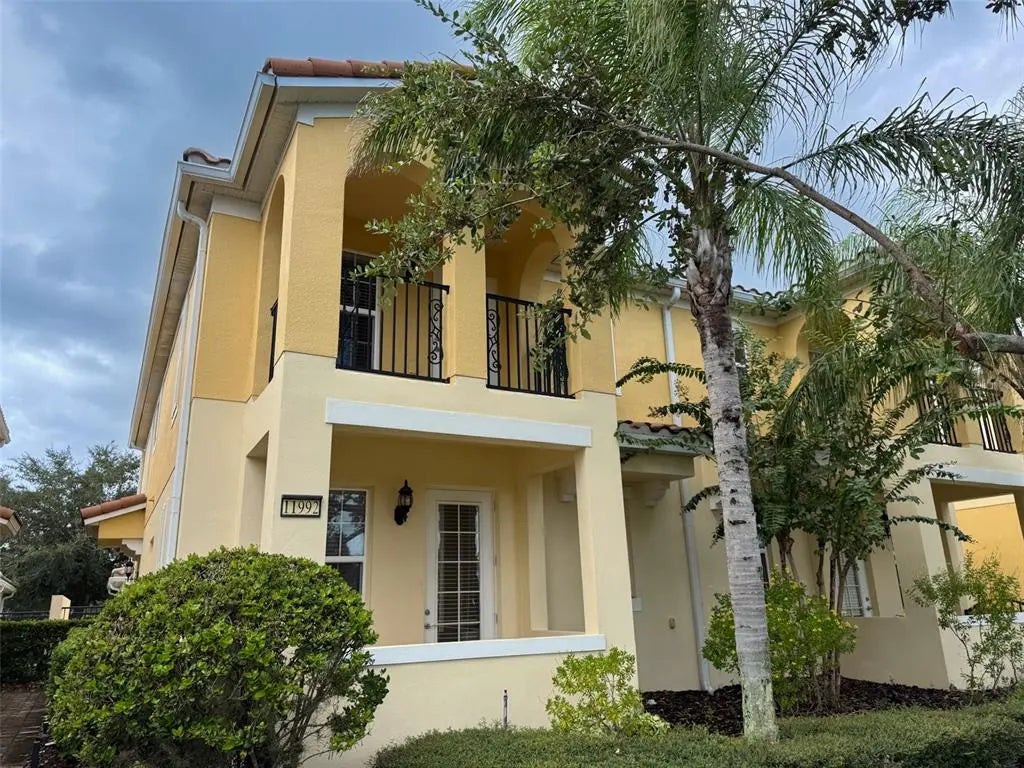 Beautiful 3 bedroom townhome in Village Walk! Welcome home to this highly desirable community in Lake Nona! This home features a large open floor plan with 1830 square feet of living space! Guests have their own private suite downstairs with a full bathroom, and patio! The kitchen features granite stone countertops, oversized real wood cabinets, upgraded stainless steel appliances including a brand-new fridge! Ceramic tile throughout downstairs, bathrooms and living room, carpet in all bedrooms. Upstairs master features a large, covered terrace with a view! Ensuite master bathroom includes a walk-in shower and dual vanity. Detached double car garage and open paved patio. Community features tennis courts, basketball courts, two community pools, and playground. 24-hour guard gate for guest entrance and separate resident only gate. Lake Nona offers plenty of unique experiences including restaurants, shops, and more! Don't miss this opportunity!