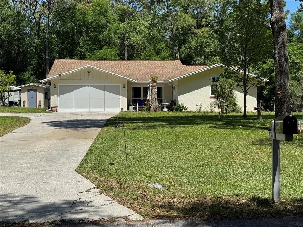 Peaceful Location on quiet streets. Enjoy Open concept home with 2 living spaces and Cozy up to a log fireplace on those rare cool evenings. Bask in the sun with your own private Pool and screened enclosure. 2 Bedroom 2 Bath features walk in closets and master on-suite. Big ticket Upgrades include: Vinyl insulated windows, Newer Roof, new water filtration and 3 Ton AC. Solar panels saving you $$ in the summer month. Property is situated on 1.2 acres with matures trees and landscapings. Over sized concrete driveway and plenty of parking. Kitchen has many upgrades, dbl oven with air frier, newer stainless steel appliances, plenty of storage and coffee bar. Outdoor space for RV's and 2 storage sheds Low Annual HOA Community, includes Private Launch to Rainbow River and Pavilion. Rainbow Springs Club House, Pool, Pickle ball/tennis court and additional amenities. located just 30 minutes south of Ocala, Horse Capitol of the World. Schedule your tour today.