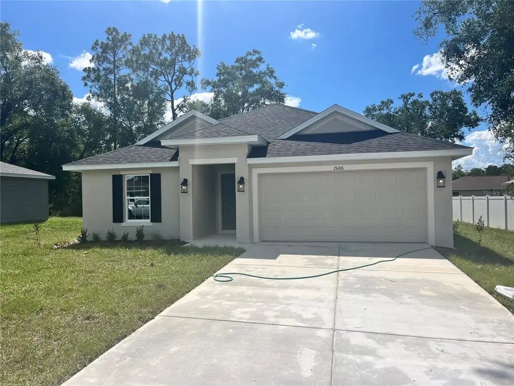 Under Construction. Almost move in ready. CONCRETE BLOCK and STUCCO - 3/2 home: It’s located in a highly DESIRED non-HOA community. So close to THE VILLAGES that you can enjoy the live entertainment in the squares every night. Within minutes from all the medical offices and hospitals that The Villages attracts (including the VA hospital just across the street from the neighborhood.) So much to do in this area: shopping, restaurants, water sports on lakes and springs, state parks, equestrian activities, theaters... you name it! Not to mention that Disney World, Universal Studios and all the fun parks in Orlando are close enough for day trips! ***Home has several UPGRADES. Kitchen has upgraded SHAKER STYLE wood cabinets with High Definition countertops and STAINLESS STEEL appliances. WOOD- LOOK TILE throughout living area and carpet in bedrooms. Separating the kitchen and great room is a large countertop with BREAKFAST BAR. Ensuite has a 5’ TILED shower in lieu of garden tub. TAEXX in-wall pest control system. 10 Year Builder Structural Warranty! Standard CLOSING COSTS paid when using Seller Approved lenders.