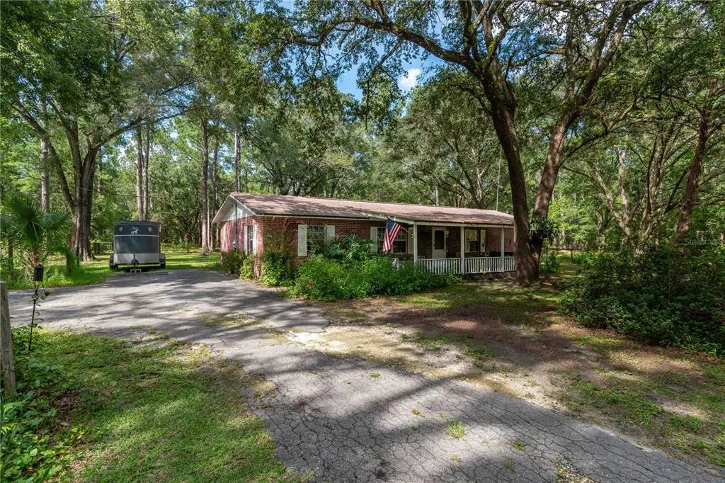 Under contract-accepting backup offers. Discover 7.83 acres of peaceful countryside living—perfect for outdoor enthusiasts and animal lovers alike. This A1-zoned property is fully fenced and features four pastures used for horse grazing, a barn, and a 4-stall run-in shelter ideal for feeding and caring for livestock. A large pond and a seasonal creek invite deer, turkeys, and other native wildlife which offers a front-row seat to Florida’s natural beauty. The 3-bedroom, 2-bath concrete block home provides a solid foundation—simple, functional, and ready for your personal touch. Located just 1 mile off Hwy 315, only 10 minutes to major grocery stores and daily conveniences, and just 2.5 miles from scenic Gores Landing for river access and recreation, this property offers the best of both worlds: room to roam with town still close by. Whether you're dreaming of a mini farm, quiet retreat, or a place to build your vision, this land is ready to welcome you home! Some photos have been virtually staged for illustration purposes only.