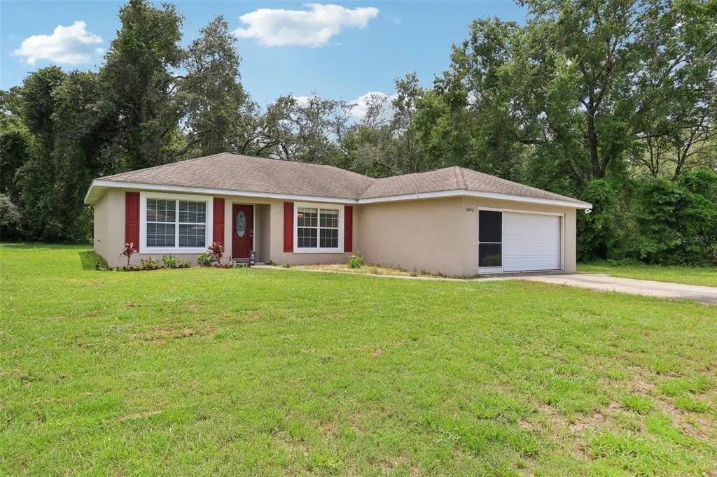 This stunning property boasts an open and spacious floor plan, perfect for modern living. The expansive primary room provides a private sanctuary, while the vaulted ceilings in select areas enhance the home's airy and inviting atmosphere. Practicality meets style with an oversized indoor laundry room that offers plenty of storage space for your convenience. The AC unit, recently upgraded in July 2025, features a smart thermostat to keep your home comfortable year-round while optimizing energy efficiency. The kitchen is a standout feature, showcasing beautiful granite countertops, durable LVP flooring, a chic stainless farm sink, and a full suite of stainless steel appliances that will inspire your culinary adventures. For relaxation, step outside to enjoy the fully functional hot tub, an ideal retreat for unwinding after a busy day. Additionally, the 12x24 metal storage building, equipped with electricity, provides ample room for tools, equipment, or hobbies, making it a flexible space for your needs. Located in a desirable area close to The Villages, you'll have easy access to shopping, dining, and recreational activities. Plus, with no HOA restrictions, you can enjoy the freedom to personalize your property as you see fit. This home is truly a gem waiting for you to make it your own!