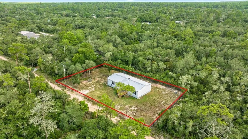 Move-in ready 3-bedroom, 2-bath doublewide (1,534 sq. ft.) on a fully fenced 0.43-acre double lot with 160 ft of road frontage—perfect for full-time living, a weekend retreat, or investment. Interior features include fresh paint, new carpet in the primary bedroom, updated bathrooms, and a split floor plan with open living, dining, and kitchen areas. The kitchen offers a breakfast nook and ample storage. The primary suite includes a walk-in closet, jetted tub, and separate shower; bedroom two also has a walk-in closet. Recent upgrades: new water heater (2025), new front and side decks, and all-new fencing. Surrounded by nature in the Ocala National Forest, this property offers peace, privacy, and potential.