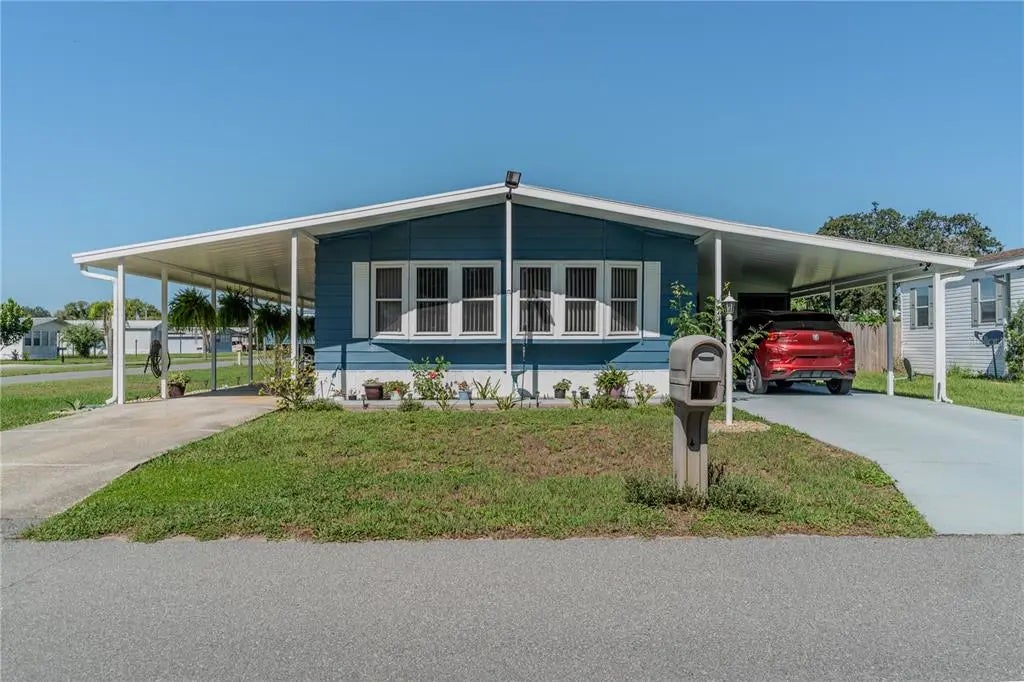 Welcome to your dream home in the coveted Caloosa Lake Village! This three-bedroom, two-bath residence is perfectly situated on an oversized corner lot, offering ample space and privacy. As you approach, you'll be greeted by a charming façade featuring new paint and huge double bay windows that flood the interior with natural light. Step inside to find an inviting open-concept layout adorned with laminate flooring throughout. The heart of this home boasts a built-in breakfast bar, perfect for casual dining, while the spacious dining room showcases elegant built-in cabinets for your storage needs. Enjoy the luxury of high vaulted ceilings that enhance the sense of space and airiness. The primary bedroom is a true retreat, featuring an en suite bathroom complete with a generously sized walk-in closet and a newly upgraded walk-in shower. An impressive massive utility room/workshop is conveniently attached to the home, providing plenty of room for a freezer, washer and dryer, extra refrigerator, and a work bench for all your DIY projects. With a single car garage, a large 25 x 10 carport, and three separate driveways, you'll have plenty of room for guests and vehicles. Relax and entertain on the large covered porches on both sides of the home, making it ideal for gatherings or quiet evenings enjoying the serene surroundings. This is more than just a home; it's a lifestyle waiting to be embraced. Don't miss out on the best lot in Caloosa Lake Village!