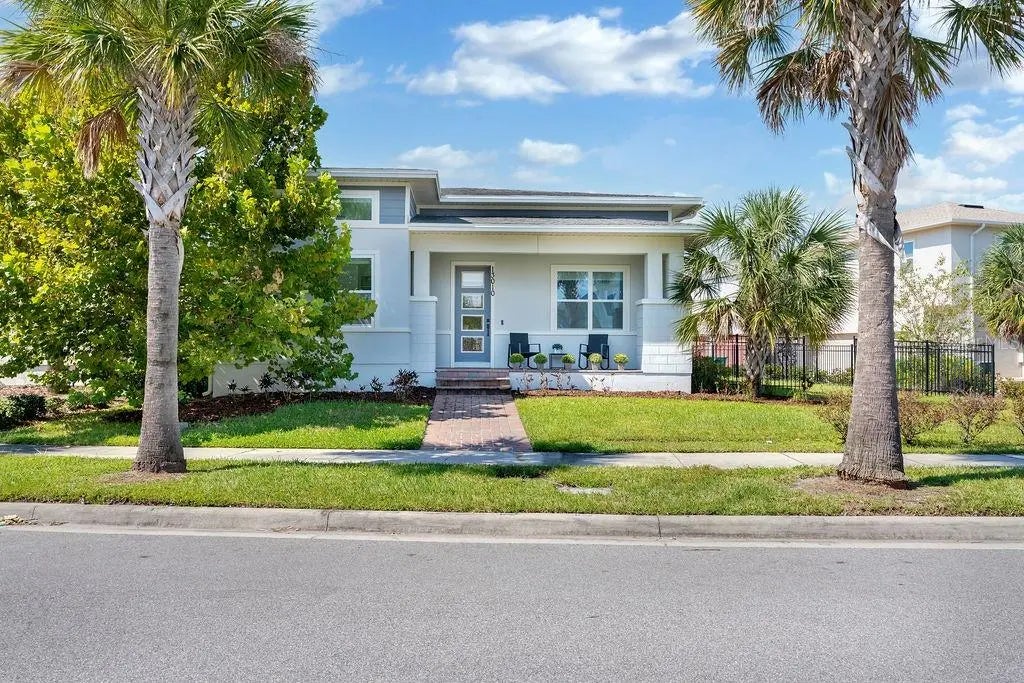 Beautiful corner lot single story modern home with 3 Bedroom and 2.5 baths located in the Laureate Park community in Lake Nona. Home has 2,781 sq. ft of living space (Total of 3,818 sq. Ft) located in a 10, 264 Sq. Ft. Lot. The house includes a detached 1BD/1Bth Garage apartment with a 1-Car Garage that can be rented for an additional income of around $1800 per month. The house features an open floor plan with vaulted ceilings and ceramic tile throughout the home. As you make your way to the foyer you will find a Den/Office/Bonus room space followed by an open kitchen with beautiful large counter tops, stainless steel appliances, attached breakfast area and cabinet and pantry closet. There is a 1/2 bath by the family room and a laundry area with washer and dryer. There are 2 Bedrooms in the front of the house with a shared hall bathroom. The Primary/Owner’s Suite is at the back of the house and features a large walking closet with 2 sink vanity and a large shower in the primary bathroom. The back door exists to a back finished patio ready for entertainment with a combination of turf and grass. The corner lot provides a large space for the patio and allows plenty of light to enter the home. The pathway to the 2/3 car garage leads to the detached 1 BDR/1BTH 2nd floor apartment. The unit has own private access to the apartment and includes stainless steel appliances, full size washer and dryer, elegant countertops, and tile flooring throughout unit (carpet on stairs). Unit has a full bathroom with shower/tub. This unit can have a dedicated garage space. The HOA includes basic cable, high speed internet, entry to the Laureate Park (LP) Fitness and resort style pools. LP also offers community gardens, dog parks, playgrounds and miles of walking trails to enjoy. You can also enjoy your green smoothy and coffee at the local Canvas restaurant cafe. The LP community also has tennis and pickle ball courts. The house is located near local shopping and dining establishments including Canvas, Boxi Park, Park Pizza and Brewing company, Drive Shack Golf, ROX Climbing Gym, the USTA (US Tennis Association) complex which includes 100 tennis courts spread across 64 acres and others. The Lake Nona Medical City with Nemours Children’s Hospital, the VA Hospital and the UCF Collage of Medicine are all close by. Within minutes you are also in Narcoosee Rd where you can find Lowes, Walmart Supercenter, Sam’s Club, Bolay, Chick-fil-A and many other shopping, recreational and dining options. Orlando International Airport is a few miles away and Disney is about a 30 minute drive. The property is currently zoned for A+ Schools. BEEP autonomous shuttle service is available. This beautiful home wont stay in the market for long, so hurry to see it and make it yours!