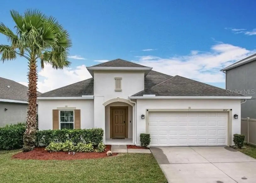 Stunning 4 Bedroom, 2 Bathroom home with HEATED POOL, FENCED BACKYARD and FULLY PAID OFF SOLAR PANELS, build in 2017. Welcoming modern open concept design, perfect for living and entertaining. The open living and dining area flows into the modern kitchen with sleek stainless steel appliances, granite counters, pantry and huge Island with room for counter chairs. Master suite features: Laminate flooring, walk in closet, linen closet, Granite dual sinks vanity and large shower with glass door. The additional 3 bedrooms provide flexibility for a home office or guest room all with brand new carpets. 2nd bathroom offers Granite dual sinks vanity and bathtub with shower. Inside Laundry room with front load washer and dryer. Step outside to a spacious beautiful paved pool deck and sparkling pool with sun shelf and in-pool sitting ledges, enjoy the large covered lanai offers ceiling fans, ready for relaxing and fun in the sun, the backyard is fully fenced. Home has DUAL PANE WINDOWS and PAID OFF SOLAR PANELS and BACK UP POWER GENERATOR with 30 day storage capacity, insuring ENERGY EFFICIENCY. 2-car garage with epoxy floor. Also enjoy many EXTRAS, 2025: New outside paint, new carpets, dryer ducts cleaning, A/C maintenance (serviced every 6 months) 2024: New refrigerator, new front-load washer. 2022 Solar Panels and back up generator and epoxy garage floor. This exceptional home have style, functionality and sustainability. In addition, Whaleys Creek community amenities includes playground and pool. No CDD, Location is convenient to shopping centers, restaurants and entertainment. Don't miss this one.