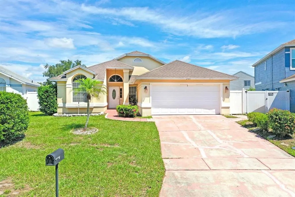 Welcome to your dream home! This beautifully designed 3-bedroom home, 2-bathroom, 2 garage, Pool Home, Cul De Sac Lot, single-family residence offers 1,565 square feet of spacious in the Subdivision MONTEGO BAY, just minutes away from DISNEY WOLD PARK ATTRACTIONS! FRESH PAINT, NEW BLINDS. Open floor plan, the floors include tile on the floors.
