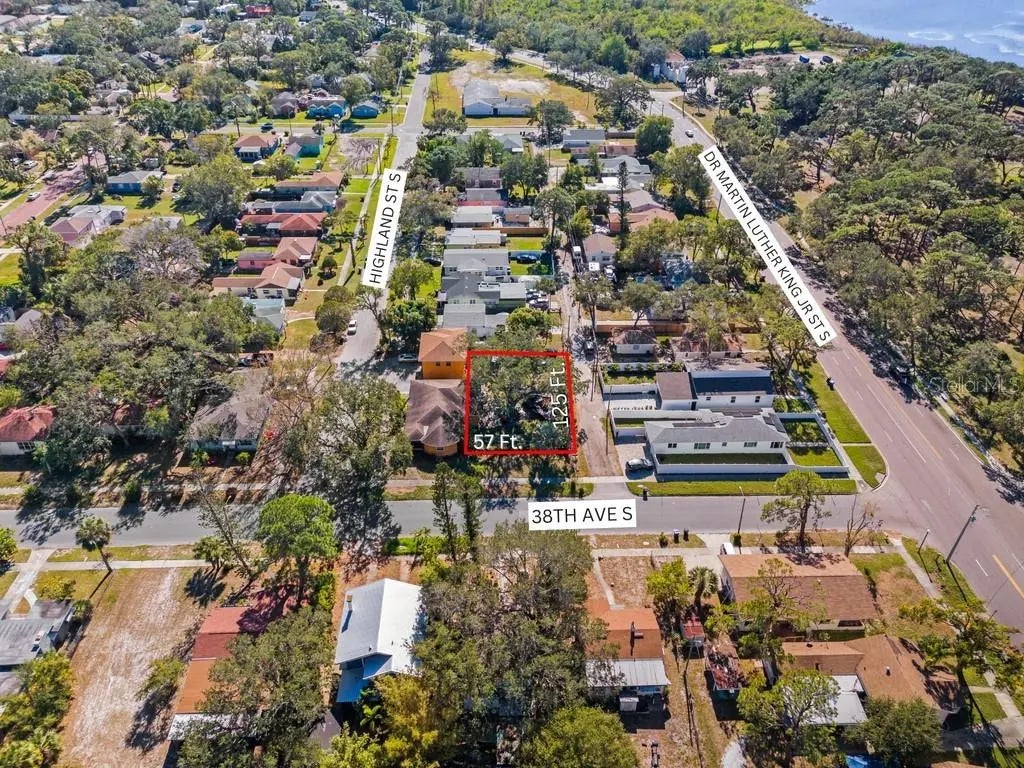 Corner lot zoned NT-1 approved for single family residence with an ADU just off MLK St S, across from Lake Maggiore Park in south St Pete. Dimensions are 57x126 providing a generous 7,090 sq ft for you to build a beautiful home. New builds & developments are starting to pop up in this area so get in while it's still affordable. Just down the street you'll find the local favorite Mullet's Fish Camp & Market as well as the ground breaking development of Coquina Key Shopping Plaza. Probate process is complete. Seller willing to remove trees and fence upon signed contract!
