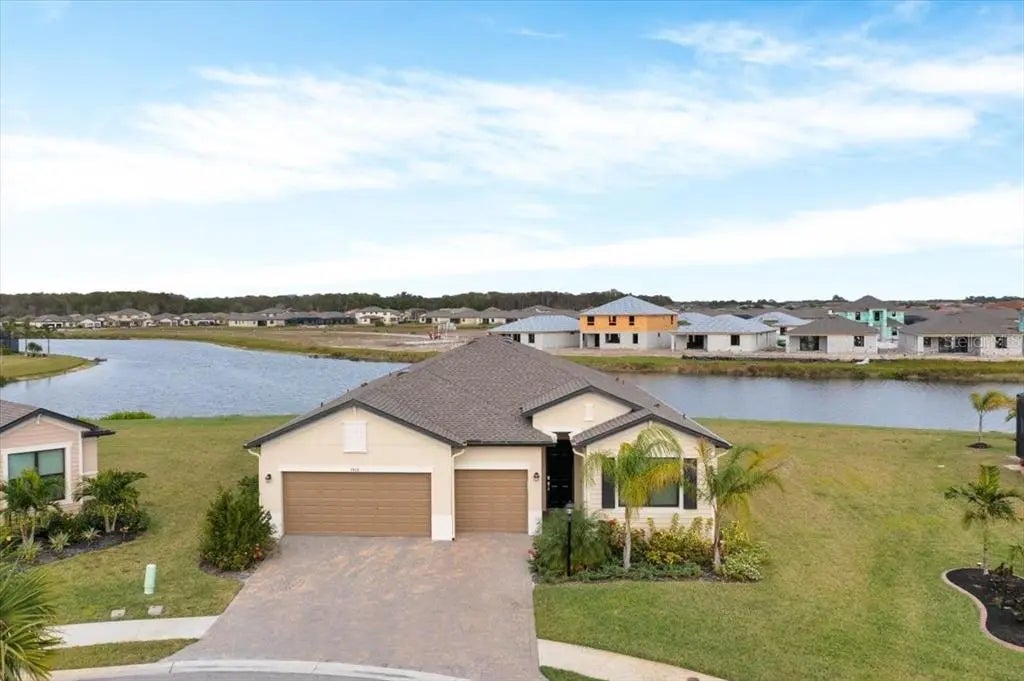 STUNNING LAKE VIEW HOME!! This four-bedroom 3-bathroom ranch home has a stunning lake view from most rooms in the house and especially from the back lanai. It sits on a large 0.3 acre pie shaped lot on a cul-de-sac. This home boasts a 3-car garage and has a an add on new rain gutter system (not included in original construction) throughout the house with neutral exterior color. It has the most up-to-date hurricane impact storm windows and doors. A large lanai with screen in porch faces the lake. The front bedroom is an in-law suite with its own bathroom for guest privacy. The master bedroom has an immense lake view with a double window, large walk-in closet, her and his separate sinks, and a large walk-in shower. The third and fourth bedrooms have a shared bathroom with double sinks. There is upgraded tile floor throughout the home and upgrade elemental gray wall paint. There a 7 ceiling fans in all bedrooms, dining/flex room, great room, and lanai. The home is a Smart Home equipped with a RING Security System!! Lawn maintenance and irrigation are included in the HOA fee. One of the Highlights of this house is the large kitchen with huge angled bar (four barstools), granite countertops, ample 42-inch cabinets, and in-kitchen island, an eat-in cafe/dinette nook, GE profile smooth top range, dishwasher, microwave oven, washer and dryer, and double door refrigerator/freezer!! Come check out this beautiful Florida lake view home, and make it your own!! -- "Owner Motivated! Bring ALL offers!!"