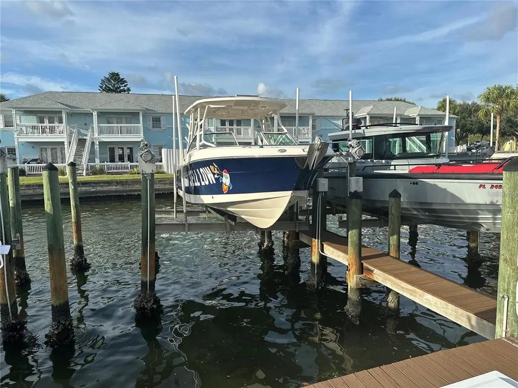 Waterside to Coquina Key South! Boat Slip 11SS. This prime slip comes complete with a 13,000 lb lift, ideally suited for boats up to 32 ft in length. Offering direct access to the expansive blue waters of Tampa Bay and beyond to the iconic Skyway Bridge, this location is a boater's dream. Maintenance of this dock slip is expertly handled by the Homeowners Association (HOA), ensuring your convenience. The slip is thoughtfully equipped with water and electric connections, as well as a secure storage dry dock box. Ownership within Waterside at Coquina Key, whether North or South, is a prerequisite. Condo is available for sale in Waterside as well, please see separate listing.