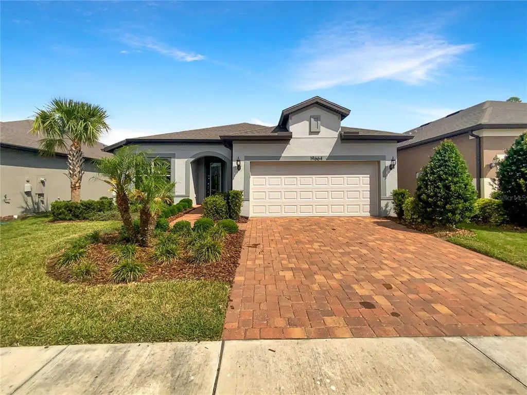Welcome to Your Dream Home in Del Webb Bexley! Seller is willing to cover up to six (6) months of buyer’s Homeowners Association (HOA) dues with an acceptable offer. Nestled in the highly desirable Del Webb Bexley 55+ active lifestyle community, this beautifully maintained 2-bedroom, 2-bathroom home with a 2-car garage offers the perfect blend of comfort, style, and convenience. From the moment you arrive, you'll be impressed by the paver driveway, manicured landscaping, and inviting curb appeal. Step inside to discover a bright and open floor plan designed for modern living. To your left, a spacious den/office provides the ideal space for working from home, reading, or hobbies. Continue through to the heart of the home, where a gourmet kitchen seamlessly flows into the expansive living and dining areas—perfect for entertaining and everyday living. The kitchen features a large island with additional seating, gas stove for precision cooking, generous pantry for all your storage needs and stainless steel appliances. Just off the kitchen, you'll find a spacious laundry room equipped with upper and lower cabinets, plus a utility sink for added convenience. The primary suite is a true retreat, boasting a large, sunlit bedroom, an oversized walk-in closet, and a luxurious en-suite bathroom with dual vanities and a walk-in shower. Step outside through sliding glass doors to your screened-in lanai overlooking a tranquil pond view—a perfect spot to relax and unwind with your morning coffee. Enjoy easy access to shopping, dining, entertainment, and top medical facilities, all just minutes away. Don’t miss the opportunity to make this exceptional home yours—schedule your private showing today and discover the Del Webb Bexley lifestyle you deserve!
