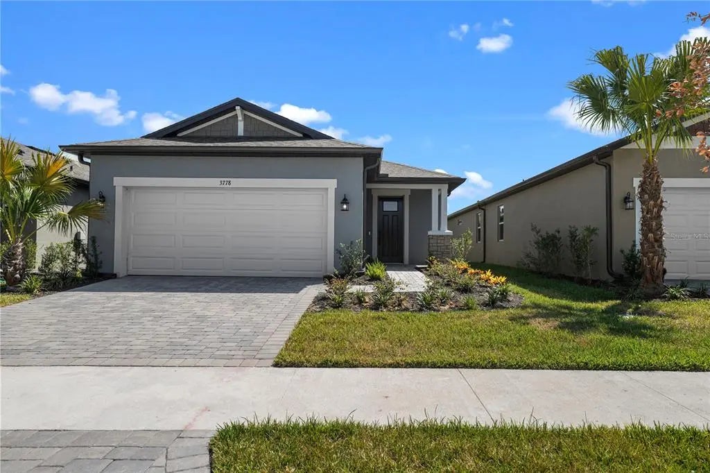 This brand-new, never-occupied home in The Preserve at La Paloma offers a rare leasing opportunity in a 55+ community designed for comfort, convenience, and low-maintenance living. Set on a quiet pond with peaceful golf course views, the home features a screened-in patio and a thoughtful, open layout. Inside, you'll find durable luxury vinyl plank flooring throughout and a beautifully upgraded kitchen with 42” navy wood cabinets, quartz countertops, Whirlpool stainless appliances, and a large island that’s great for cooking or casual dining. The den, enclosed with glass French doors, works well as a home office, hobby room, or reading area. Bathrooms are finished with decorative tile and upgraded fixtures, adding a modern touch. Smart home features like an Ecobee thermostat and a video doorbell provide added convenience and peace of mind. The Preserve at La Paloma offers a range of amenities, including a lap pool, pickleball courts, hot tub, fire pits, and walking paths throughout the community. Lawn care is included, and the home is located close to shopping and I-75 for easy access to Tampa or Sarasota. This move-in-ready home offers a fresh, no stress lifestyle in a well-maintained setting. Schedule your private showing today.