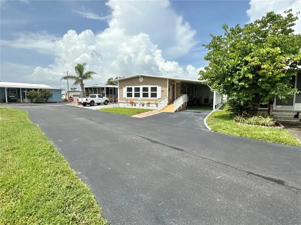 Nothing to do here but enjoy your new home! For the past 4 years, the owners have remodeled this 1,500 sq. ft 2 bed/2 bath home with over $100,000 of upgrades! Look at these features: 2022 double paned windows and doors; 2023 roof; 2025 air/heat with 10-year transferrable warranty; 2025 vapor barrier to protect the subflooring, beautiful 2024 luxury waterproof wood-look laminate flooring throughout, remodeled chef's kitchen with wood cabinets, quartz countertops, walk-in pantry, built-in desk, large island with storage and stainless appliances; utility closet with high-end 2025 washer/dryer combo--one machine does it all; guest bedroom with multiple closets has access to 2020 remodeled guest bath; primary suite has large 2023 remodeled bath including walk-in shower, double sinks, comfort height toilet and walk-in closet; and expansive living/dining room will make entertaining friends and family enjoyable. Beautiful designer lighting, paint and wall paper upgrades the interior. Outside, there's a long carport that would hold 3 vehicles easily or use part as a sitting area. 2022 shed with 252 sq. ft of storage or work space. Patio for grilling and extra paver parking pad for golf cart. The wide ramp to front door makes for easy access. Home did not flood in 2024 storms. Comes unfurnished. Chandelier does not convey with purchase. Price includes share for the lot and ownership in the co-op. 2 pets (dogs or cats) up to 35 pounds are welcomed. Home is located in popular 55+ community with easy access to downtown St. Petersburg, 2 airports and the beaches. Fourth st. shops, dining and grocery are mins away. Low monthly maintenance fee of $380 includes water, sewer, trash pick up, lawn mowing, 24 hr manned gate and all amenities including heated pool, clubhouse, fitness center and so much more! If viewing homes in this price range, you'll know what a value this is!
